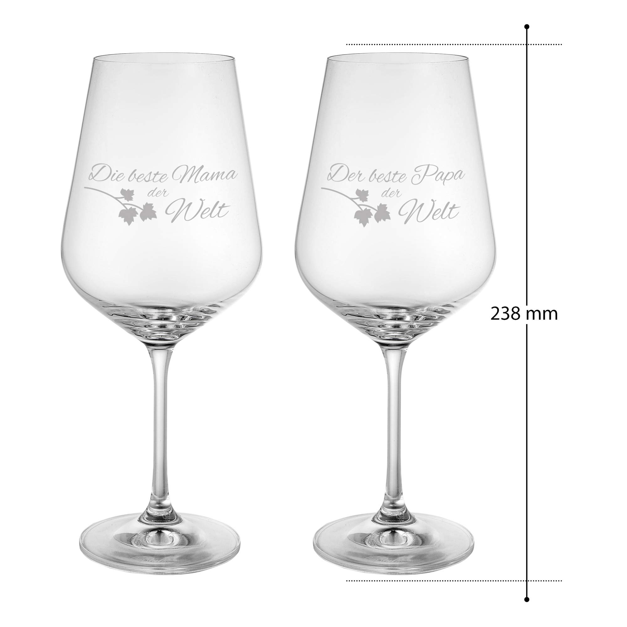 Dieses edle Weinglas-Set besteht aus zwei Gläsern aus hochwertigem Klarglas, die in einer klassischen Form mit Stiel daherkommen und perfekt für ein gemeinsames Anstoßen bei einem geselligen Dinner sind. Jedes Glas ist mit einer besonderen Gravur versehen, die besagt: "Der beste Papa der Welt" und "Die beste Mama der Welt". Das sind zwei liebevolle Komplimente, die Deine Eltern immer wieder daran erinnern werden, wie viel sie Dir bedeuten.