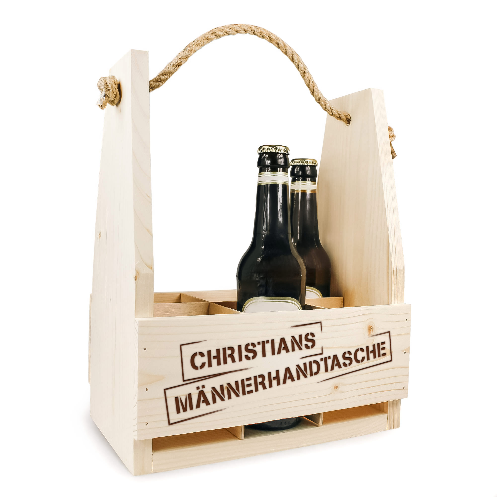 - Personalisierter Bierflaschenträger mit Gravur "Männerhandtasche"