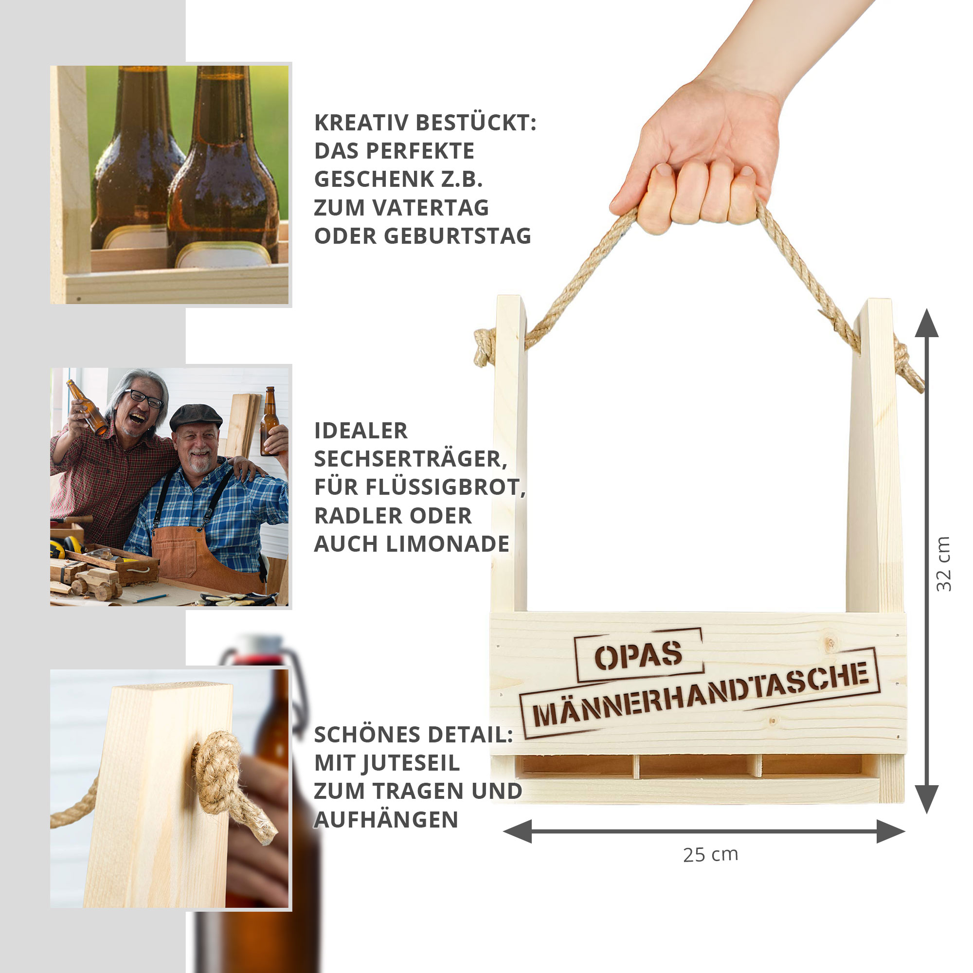 6er Holz Flaschenträger - Opas Männerhandtasche