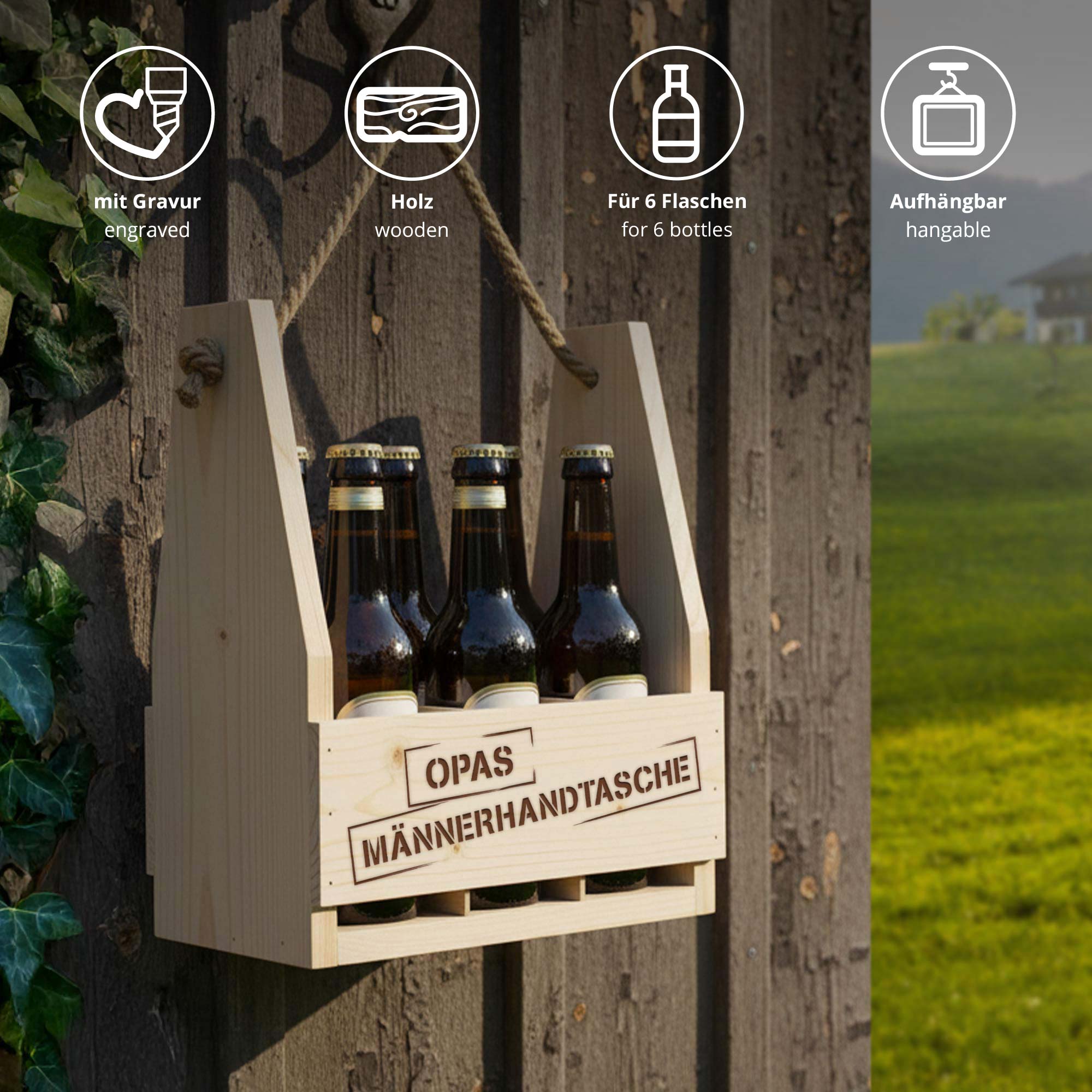 - Bierflaschenträger mit Gravur "Opas Männerhandtasche"
