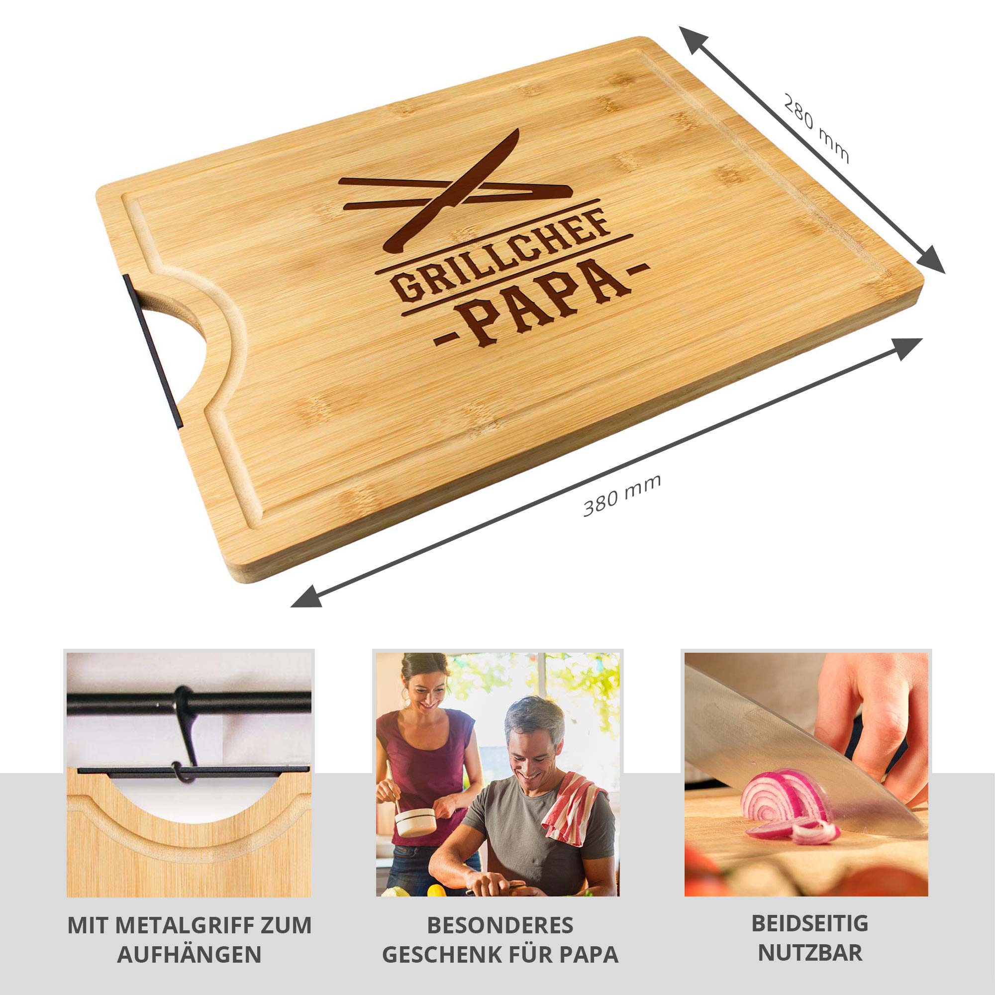 - Graviertes Schneidebrett mit Grillchef Gravur für Papa