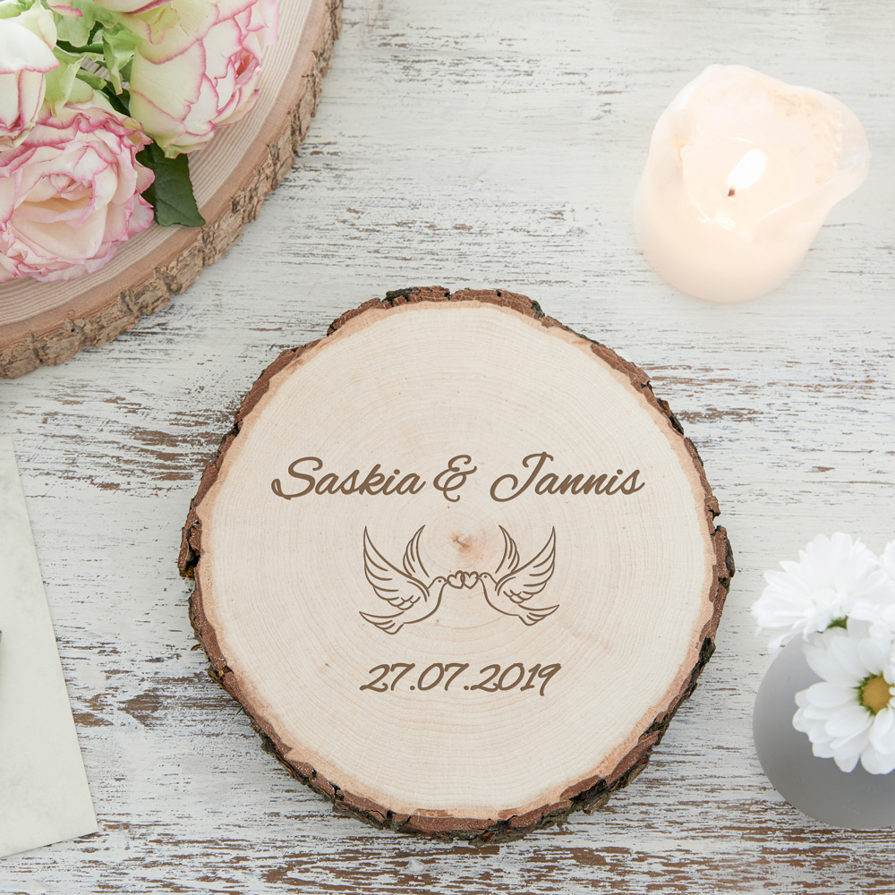 - individuell gravierte Baumscheibe als Hochzeitsgeschenk