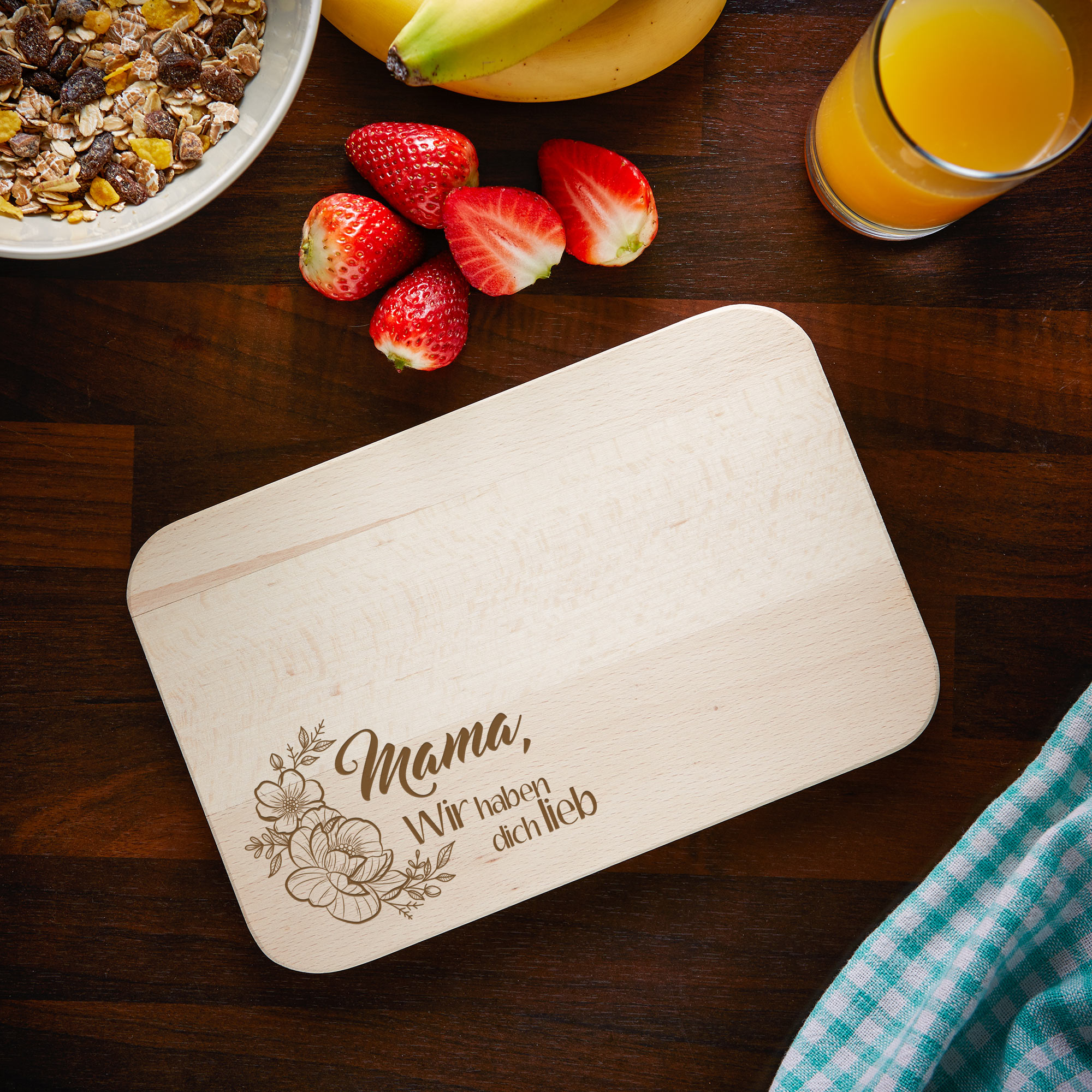 - Geschenke für Mama, die immer ankommen, sind zum Beispiel Frühstücksbrettchen aus Holz.