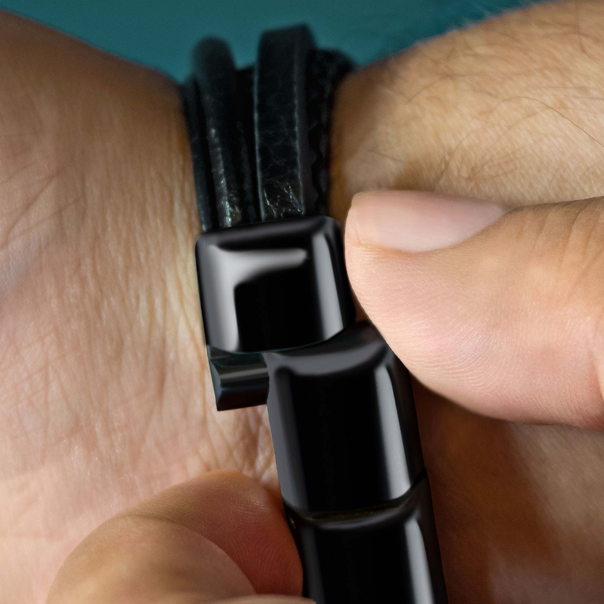 - Geflochtenes Herrenarmband aus schwarzem Leder mit Edelstahlverschluss