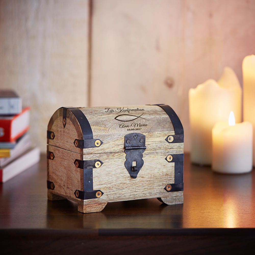 - Schatztruhe aus hochwertigem hellem Holz als Geschenk zur Konfirmation