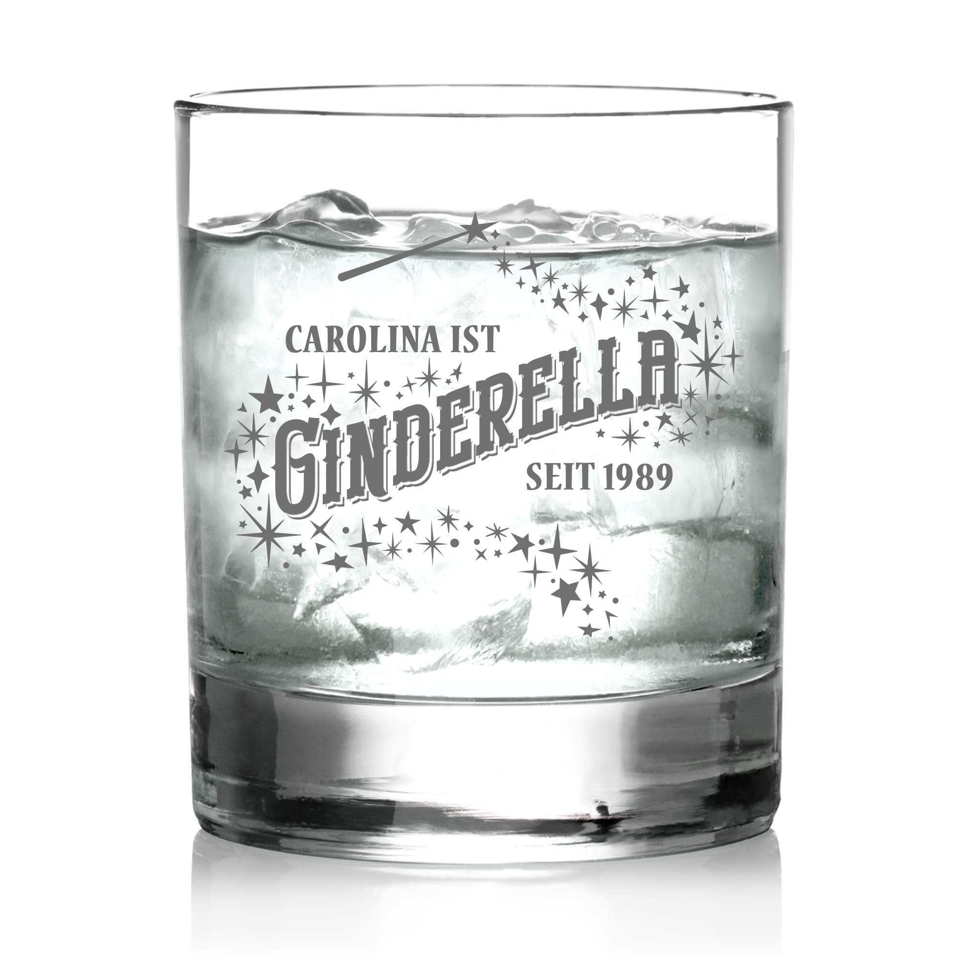 Erlebe ein exquisites Ginderella Ginglas für absoluten Hochgenuss. Das edle Tumbler Glas mit dickem Boden eignet sich für eine geschmackvolle Erfrischung und liegt angenehm schwer in der Hand. Als elegantes Highlight wird ein individueller Name und eine Jahreszahl auf dem Gin Glas verewigt.