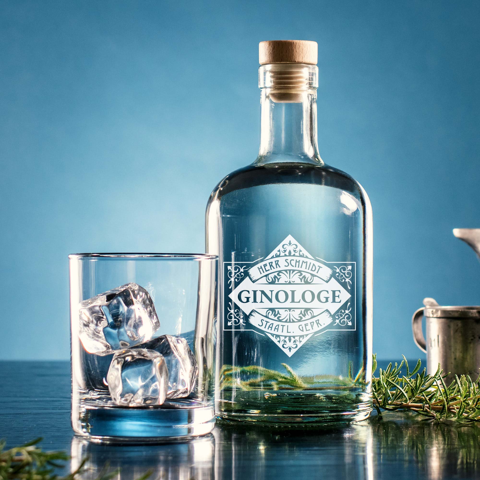 Diese personalisierte Glasflasche mit dem beliebten Motiv "GINOLOGE" wird zum stilvollen Highlight jeder Hausbar. Veredelt mit Ihrem Wunschnamen entsteht eine individuelle Karaffe, die Charakter, Humor und Design gekonnt vereint. Ob als Geschenk für Genießer oder als besondere Ergänzung für das eigene Barzubehör – diese Ginflasche steht für Hochgenuss in exklusiver Optik.