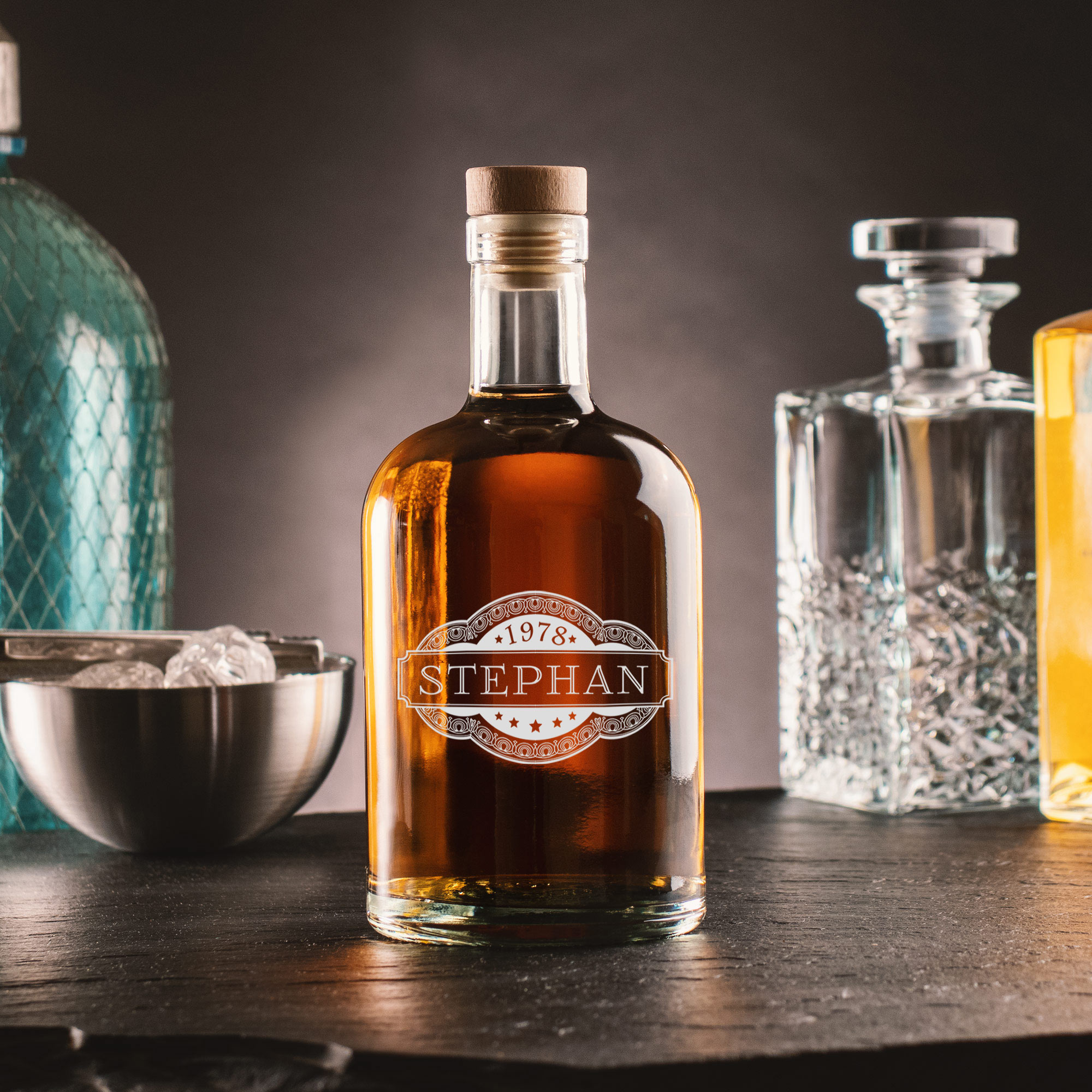 Du suchst noch ein Geburtstagsgeschenk für einen echten Genießer-Freund? Dann wirst Du hier fündig! Die Whisky Karaffe wird auf dem Banderole-Motiv mit Wunschnamen und Jahreszahl hochwertig graviert und wird so zu einem persönlichen Geschenk, das dem Tropfen der Wahl fortan ein edles zu Hause bietet. Dank des luftdichten Stopfens bleibt das Getränk dabei stets frisch und entfaltet auch nach längerer Zeit nach wie vor seinen vollen Geschmack.