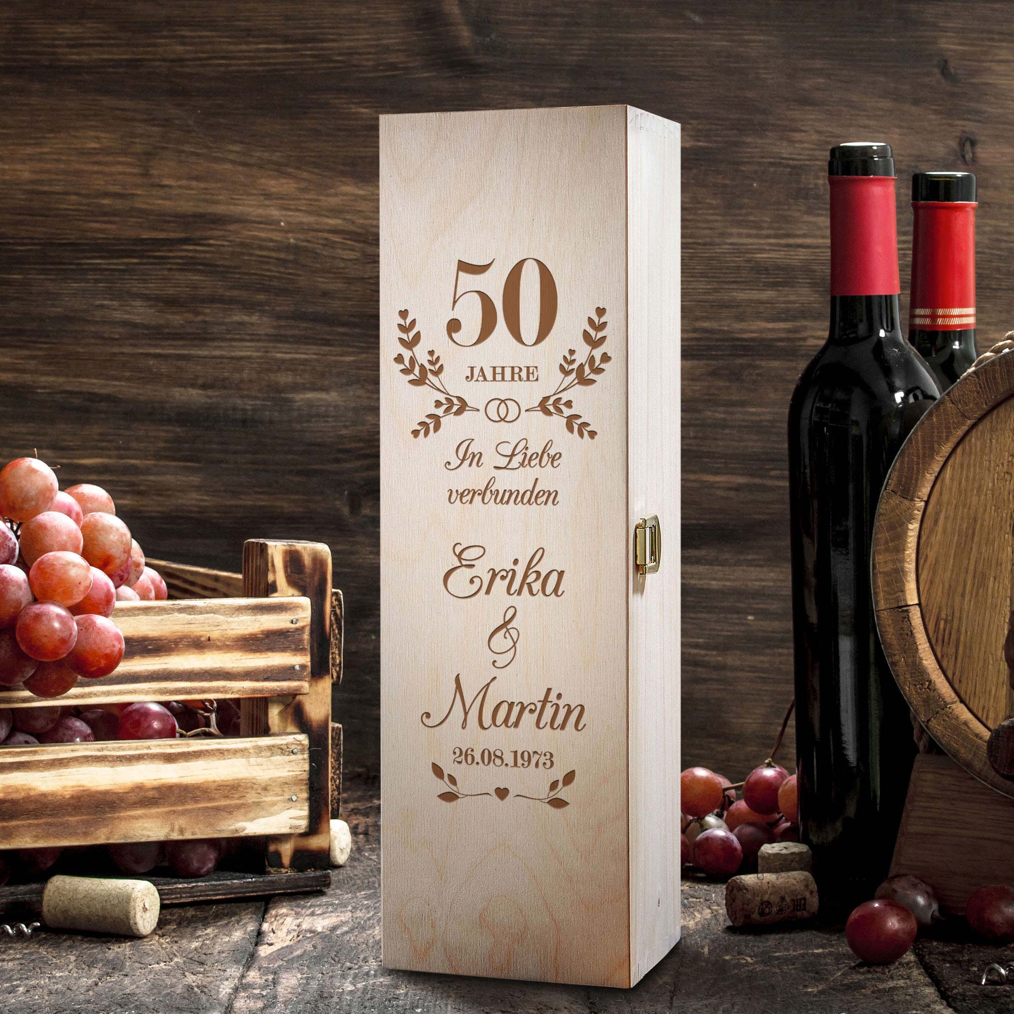 Gravierte Weinkiste zur Goldenen Hochzeit - Personalisiert