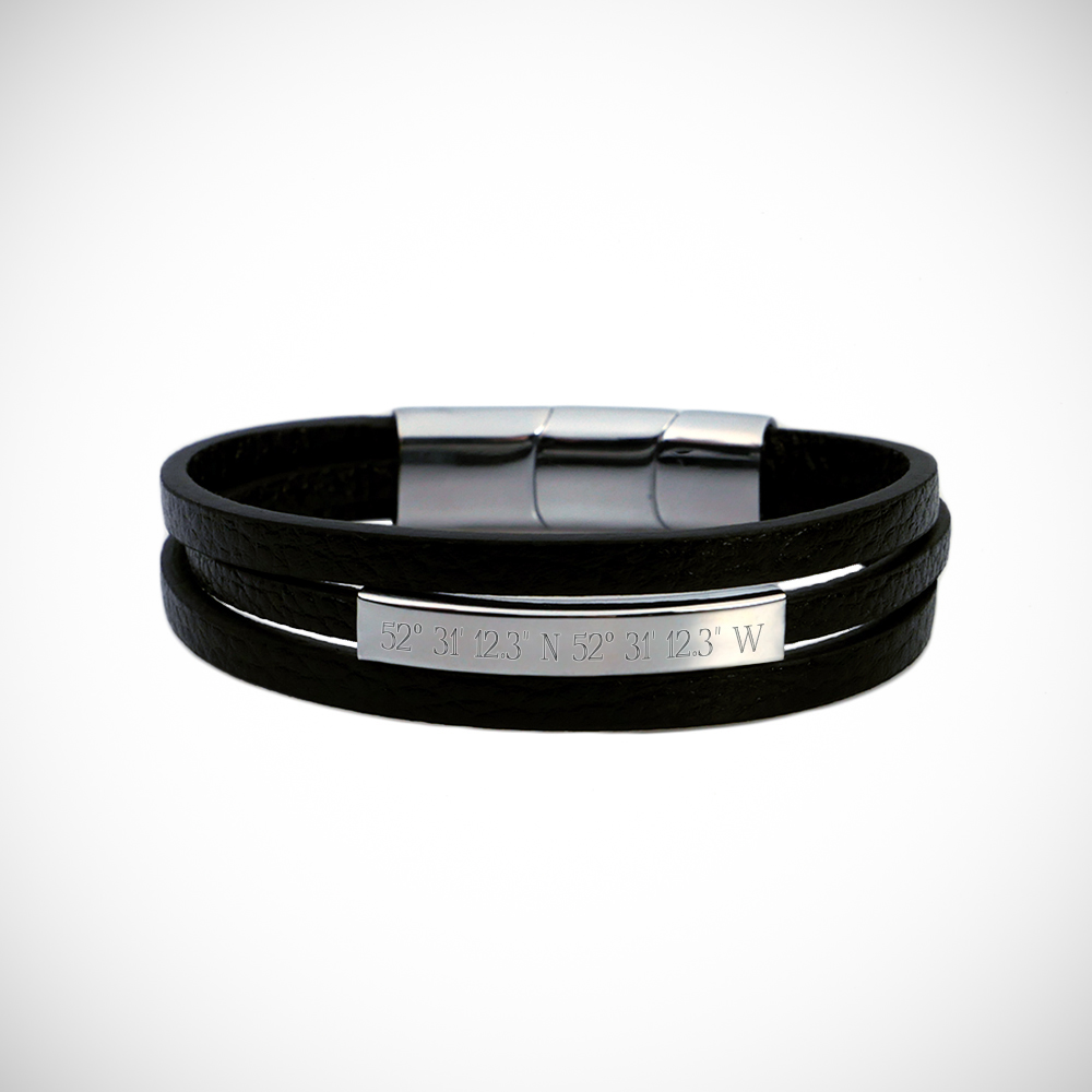Herrenarmband mit Gravur - Leder Armband - Geokoordinaten
