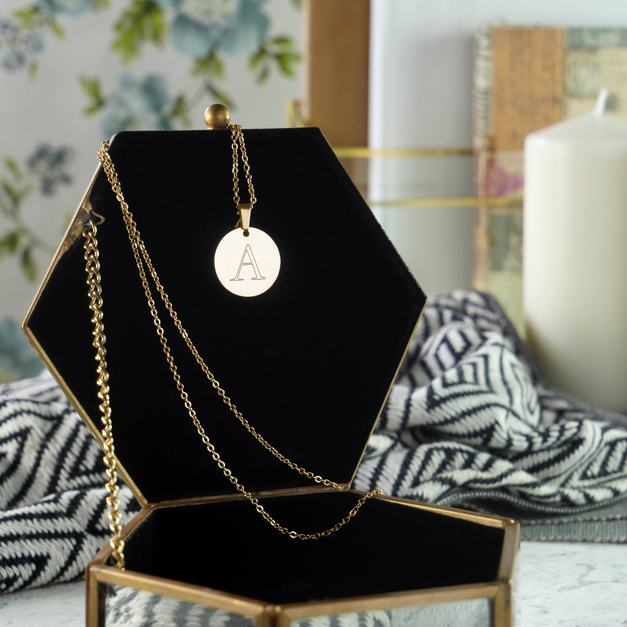 Kette mit Gravur - Runder Anhänger mit initial - Gold
