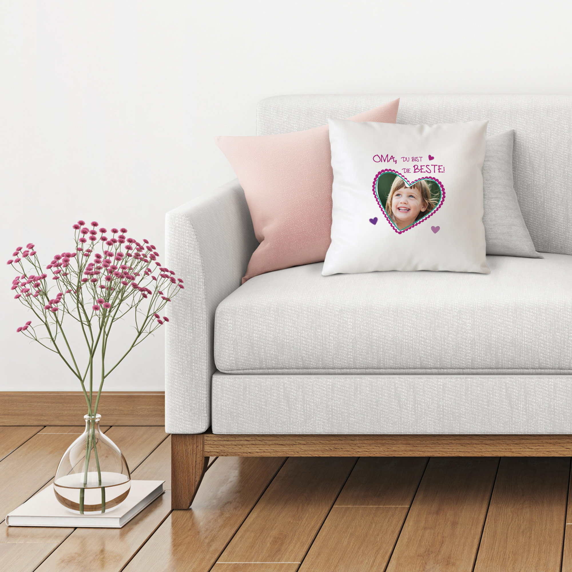 Das schöne Dekokissen mit personalisiertem Foto Aufdruck und nettem Spruch ist eine tolle Geschenkidee für Oma. Zeig deiner Omi mit diesem hübschen Accessoire für Zuhause, dass sie für dich die Beste ist! Es ist mal wieder an der Zeit deiner lieben Oma eine Freude zu machen? Dann hast du jetzt mit diesem bedruckten Kissen das Richtige gefunden! Das liebevoll gestaltete Dekokissen wird mit dem Spruch "Oma, du bist die Beste!" und einem Foto deiner Wahl bedruckt. Geeignet wären hier sowohl ein tolles Familienfoto, ein niedliches Foto der Enkelkinder oder aber auch ein schöner Schnappschuss von Oma selbst. Eine tolle Geschenkidee für alle Omis, die eine nette Aufmerksamkeit verdient haben.
