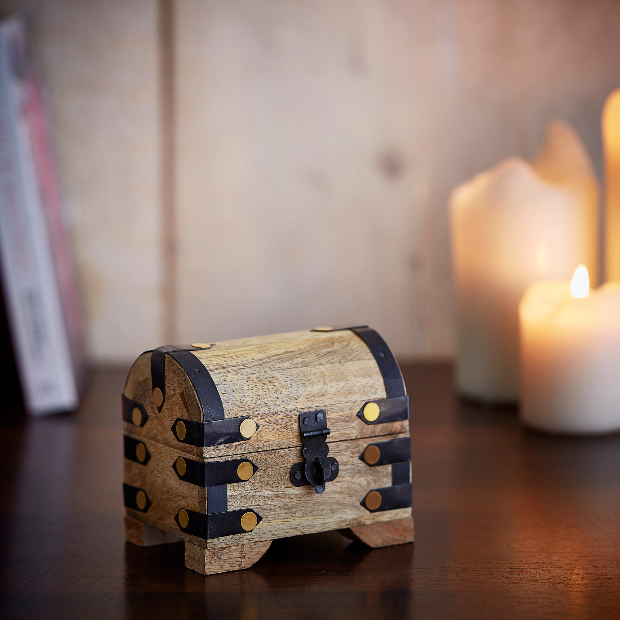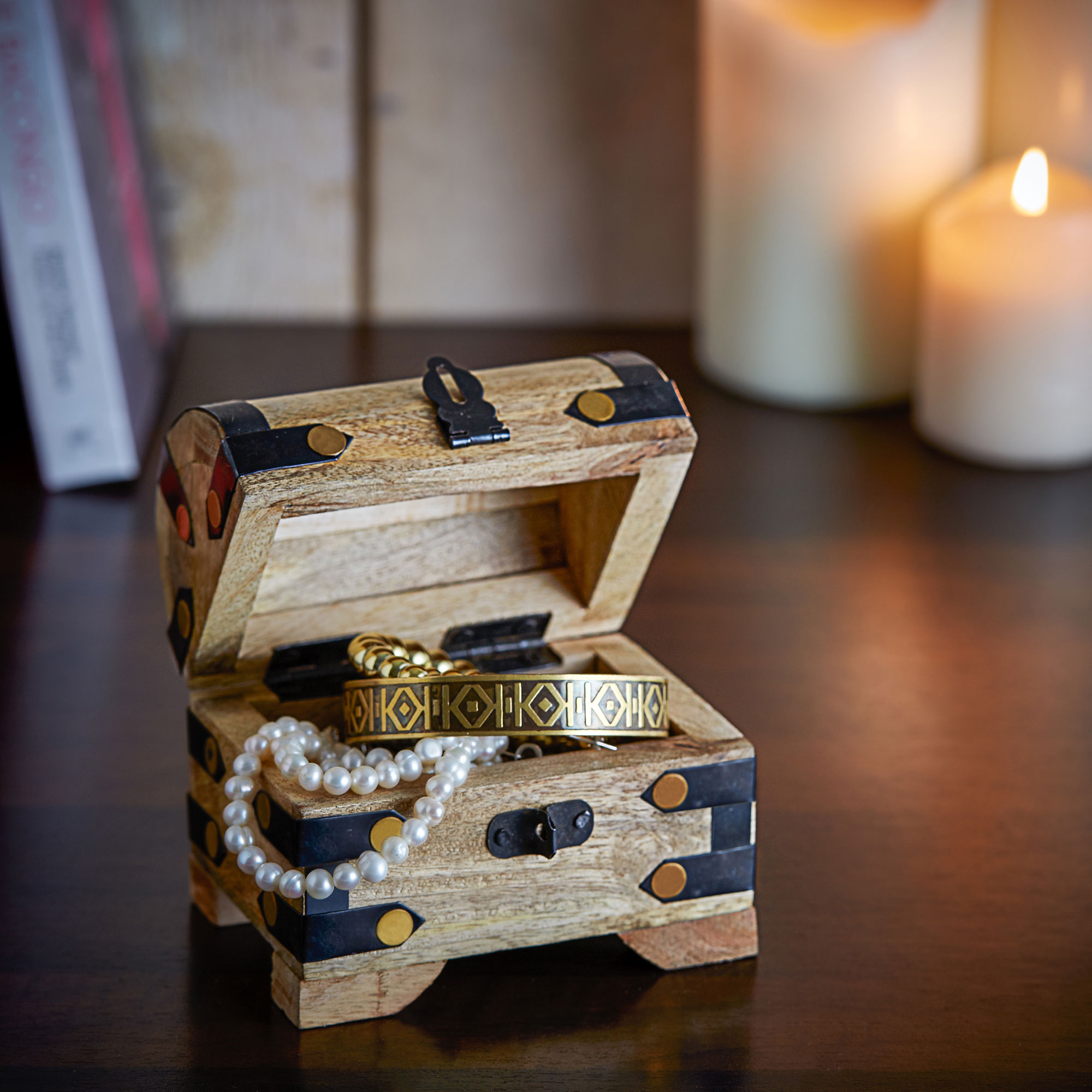 Dank ihrer kompakten Größe und ihres stabilen Aufbaus lässt sich die Truhe nicht nur perfekt als Geschenkverpackung verwenden, sondern auch als dekoratives Element für Zuhause oder als Aufbewahrung für kleine Erinnerungsstücke. Die natürliche Holzfarbe in Kombination mit dunklen Akzenten sorgt für ein edles Erscheinungsbild, das sowohl klassisch als auch modern wirkt.