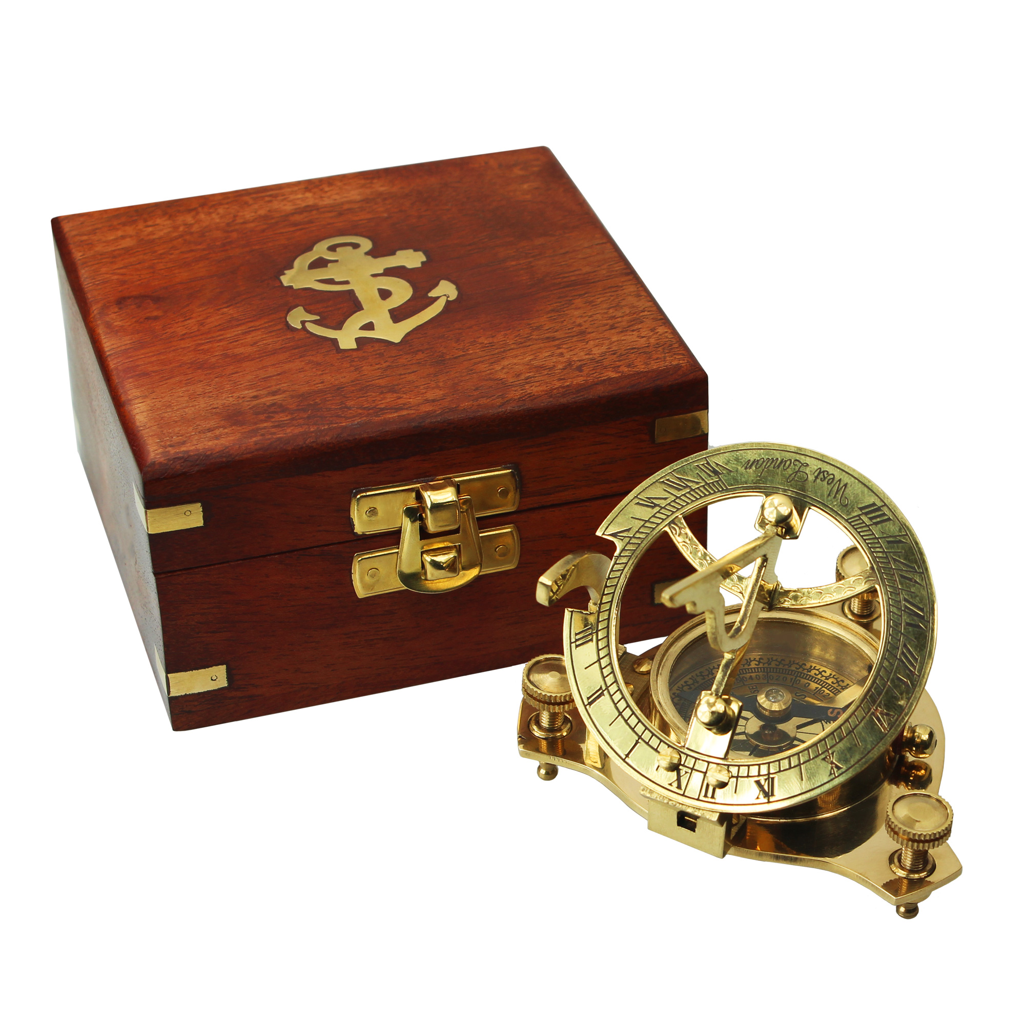 Kompass Sonnenuhr in Holzbox