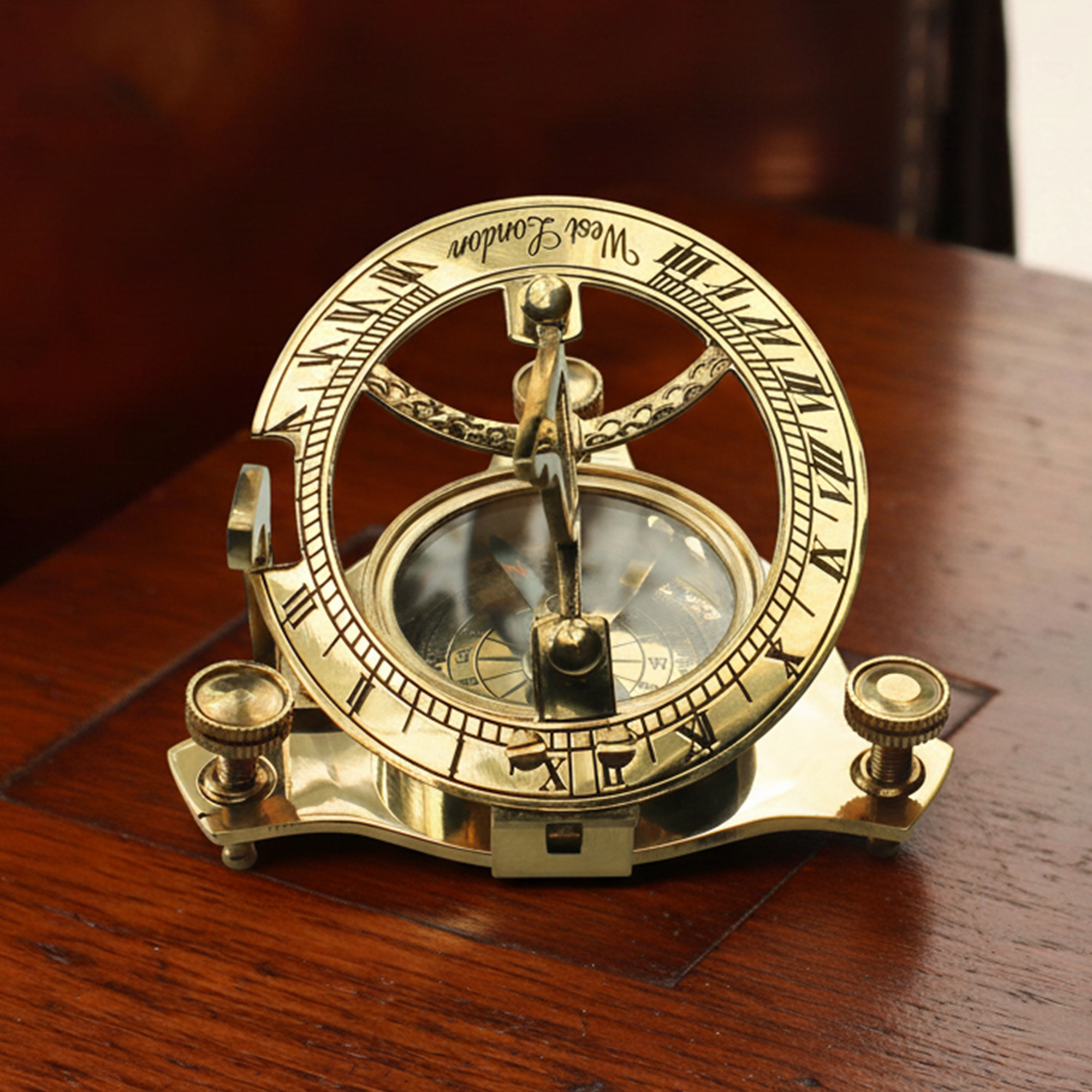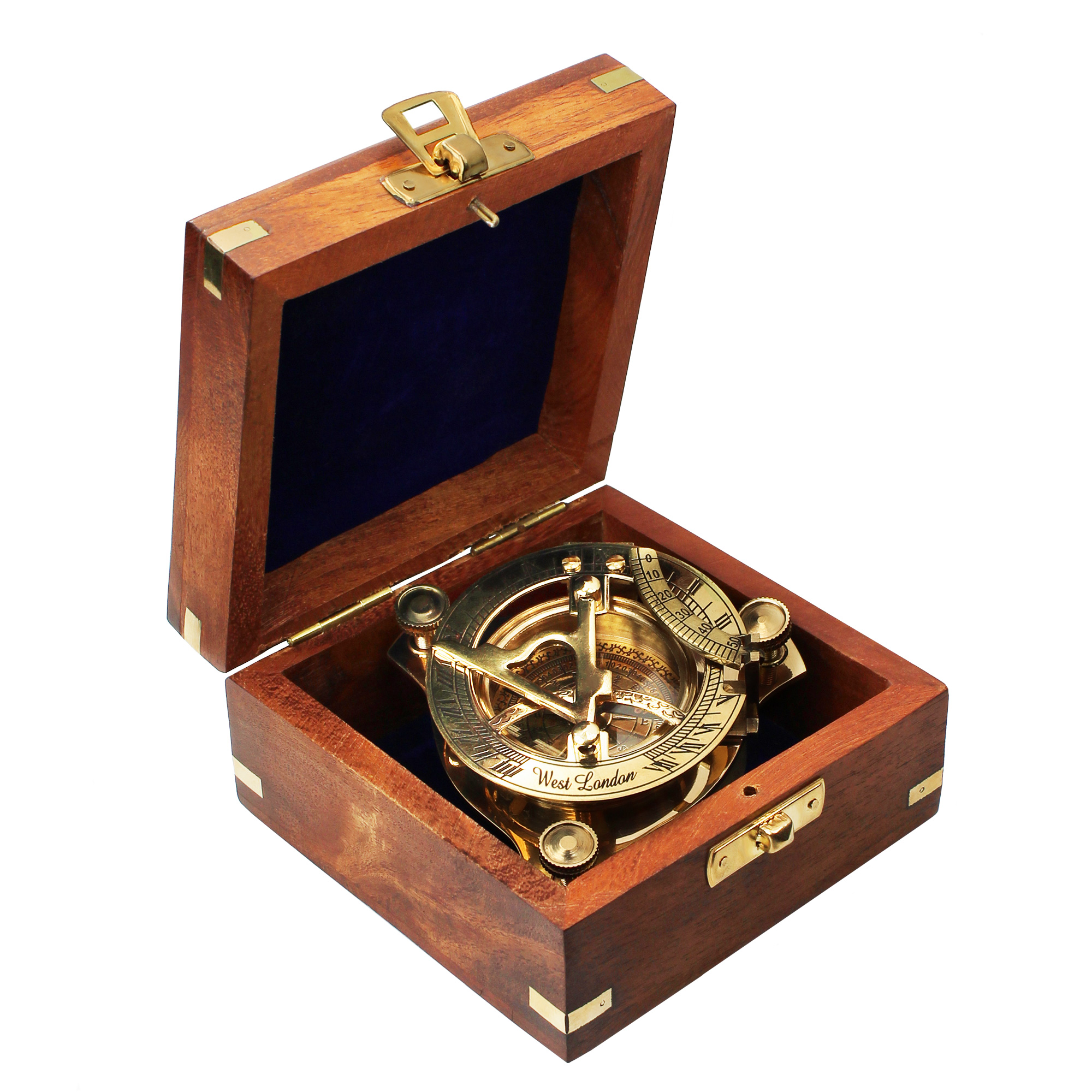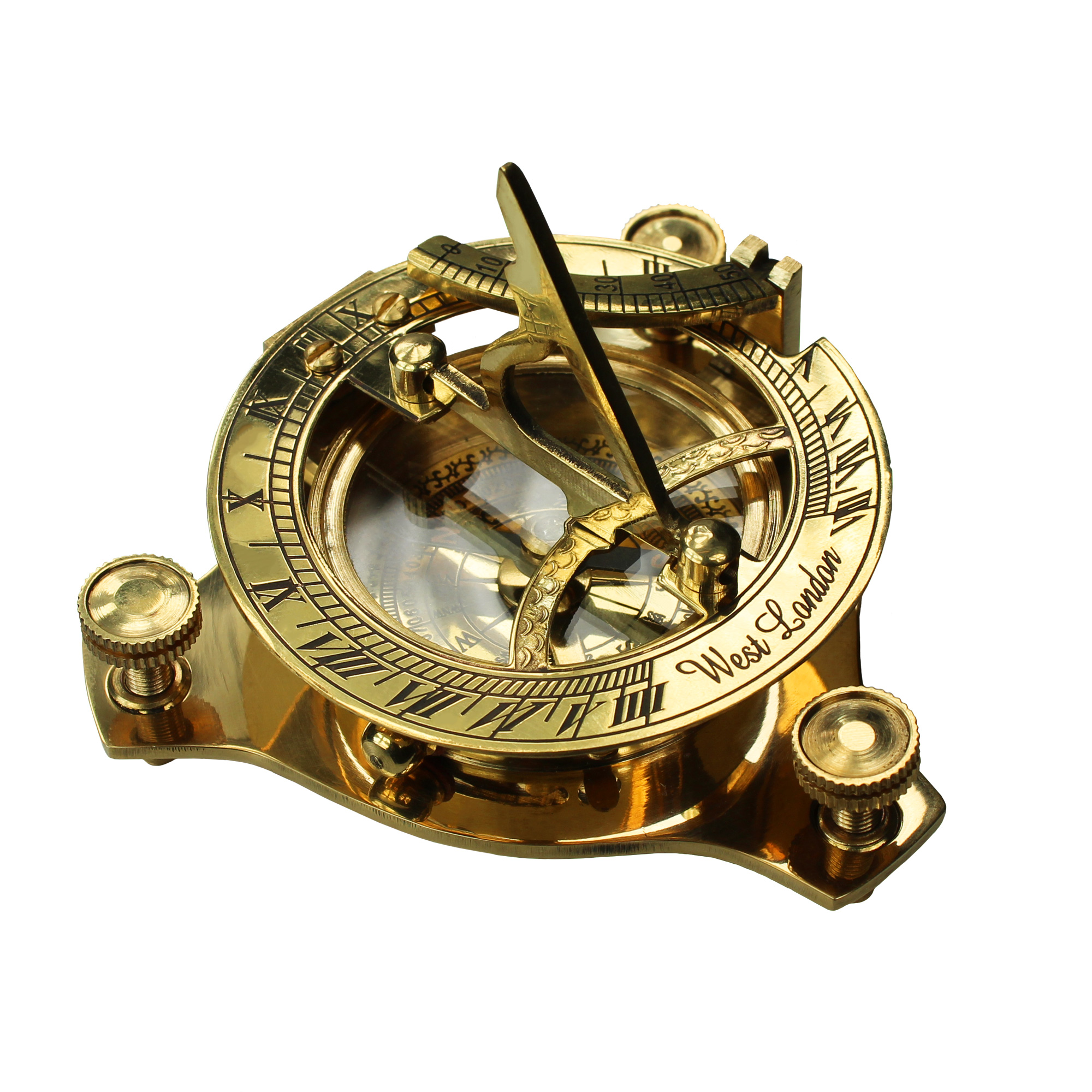 Orientierung leicht gemacht! Die praktische Kombination aus der nautischen Sonnenuhr und dem nostalgischen Kompass, lässt Dich Zeit und Himmelsrichtung wie ein historischer Entdecker bestimmen. Die klappbare Taschenuhr ist eine Nachbildung von Originalen aus dem 18. Jahrhundert, mit römischen Ziffern auf dem Stundenring und einer Skala für den Neigungswinkel. Zudem lässt sich die Messinguhr mit Kompass durch Nivellierschrauben, klappbaren Gnomon und feststellbarer Kompassnadel exakt einstellen.