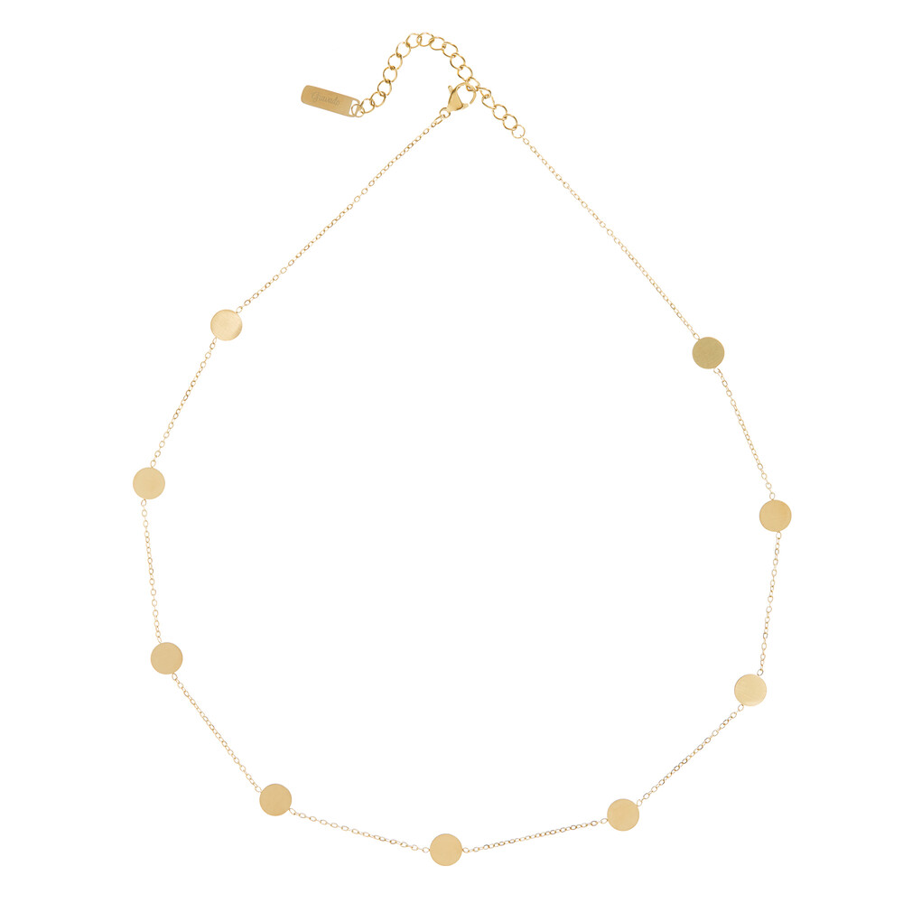 Die perfekte Kette für den Kettentrend: Die Layering Kette mit kleinen Anhängern - Gold ist zwar problemlos auch als Einzelstück ein Hinkucker. Aber auch als eine von vielen Ketten, kombiniert im angesagten Layering-Look, macht sie sich gut. Denn die hochwertige goldfarbene Edelstahl Kette ist zwar ein filigranes und subtiles Schmuckstück - schafft es aber auch Dank ihrer 9 kreisrunden Charms-Anhänger problemlos auf sich aufmerksam zu machen.
