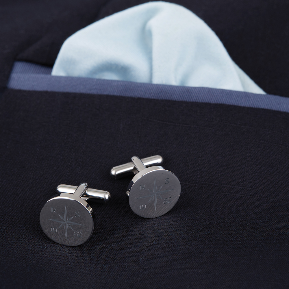 Manschettenknöpfe mit Gravur - Kompass - Rund - Silber