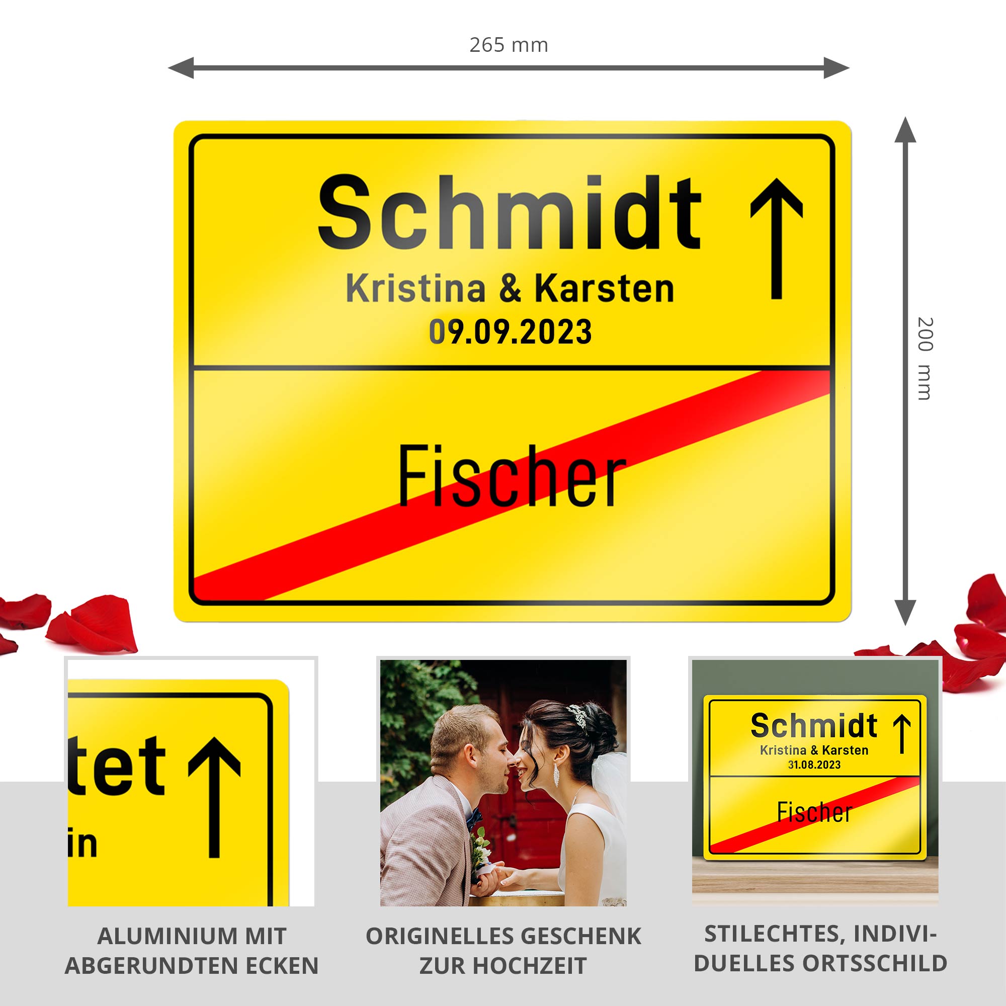 Personalisiertes Ortsschild zur Hochzeit - Namen