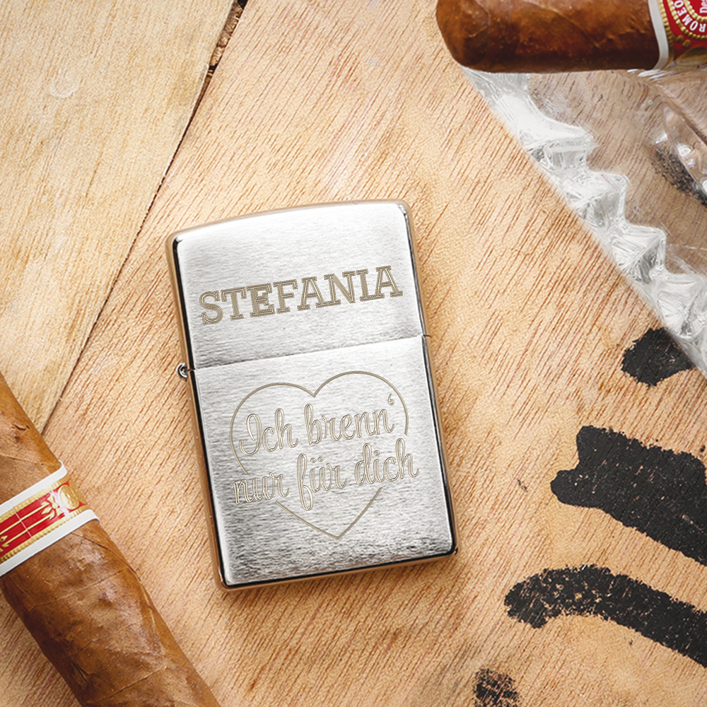 Personalisiertes Zippo Sturmfeuerzeug mit Gravur - Ich brenn für dich