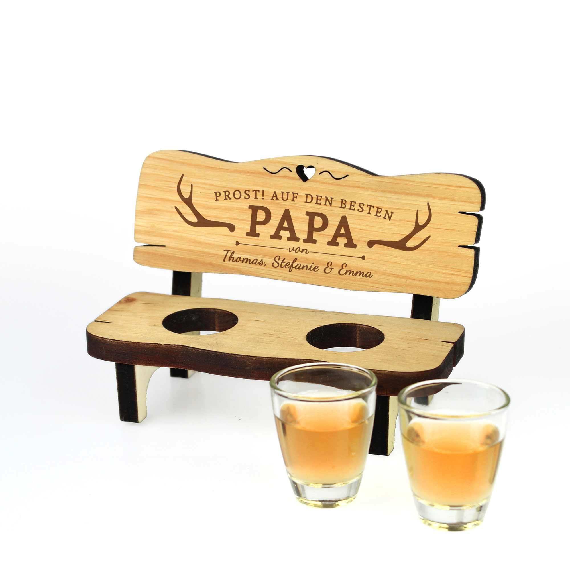 Manchmal, seien wir ehrlich, trinkt doch jeder gerne über den Durst. Denn auf einem Bein kann man nicht stehen. Und, so weiß es unsere Schnapsbank mit Gravur - 2 sitzen: Zwei sitzen besser als einer. Vor allem, wenn das köstliche Getränk auf einem edlen und schicken Schnapsbänkchen aus Erlenholz serviert wird. Ob als romantisches Geschenk oder als Geschenkidee zum Vatertag: Einfach perfekt. Da bleibt keiner lange sitzen