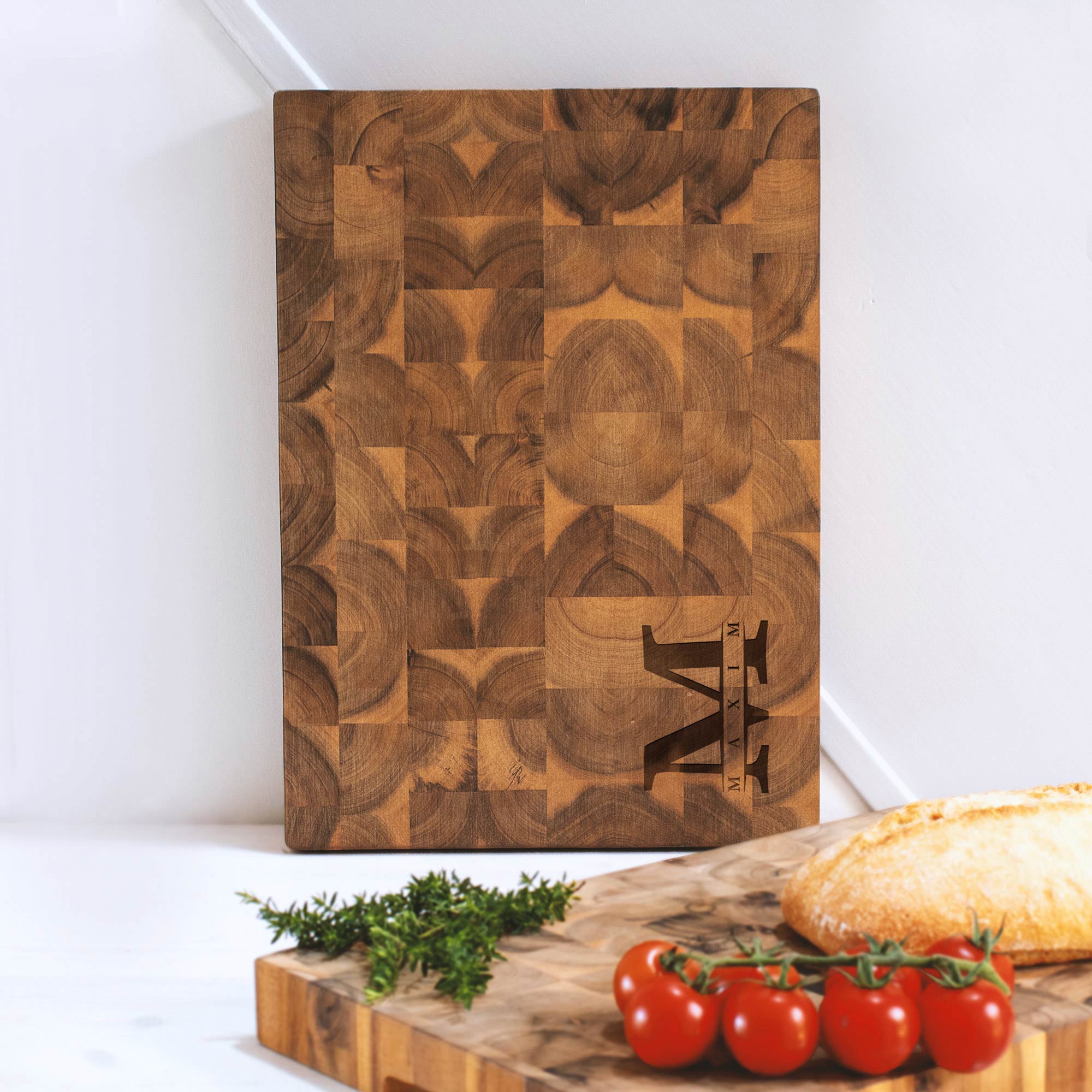 Schneideblock Akazie - Initial und Name - Personalisiert