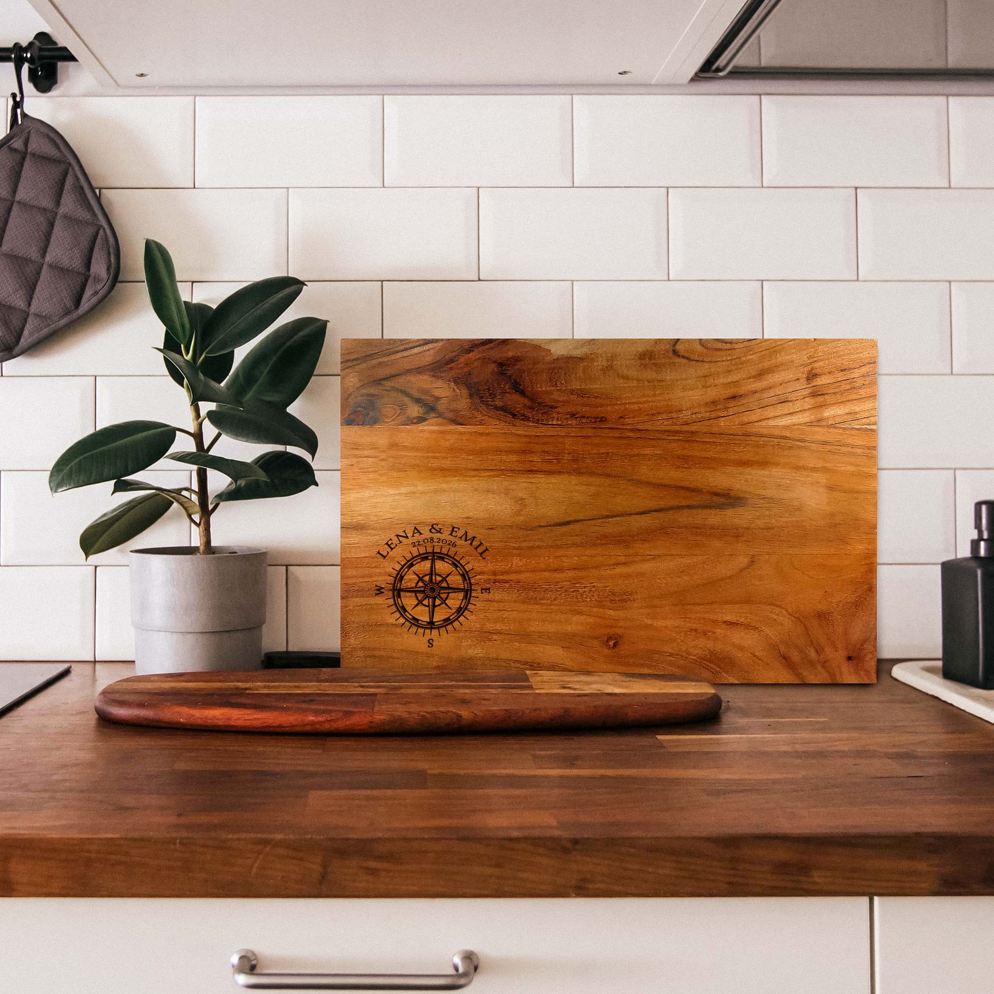 - Personalisiertes Schneidebrett mit Kompass Motiv