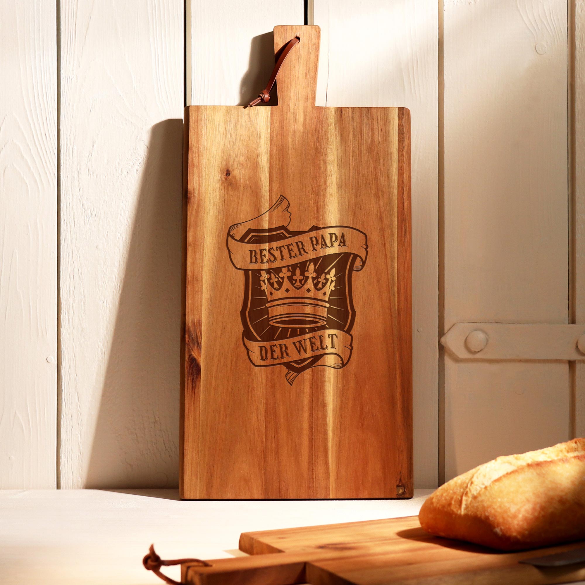 Schneidebrett mit Griff für den besten Papa - Krone Gravur