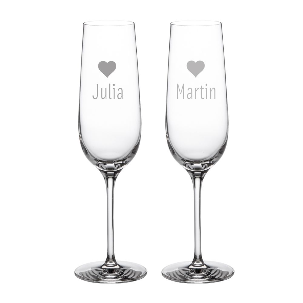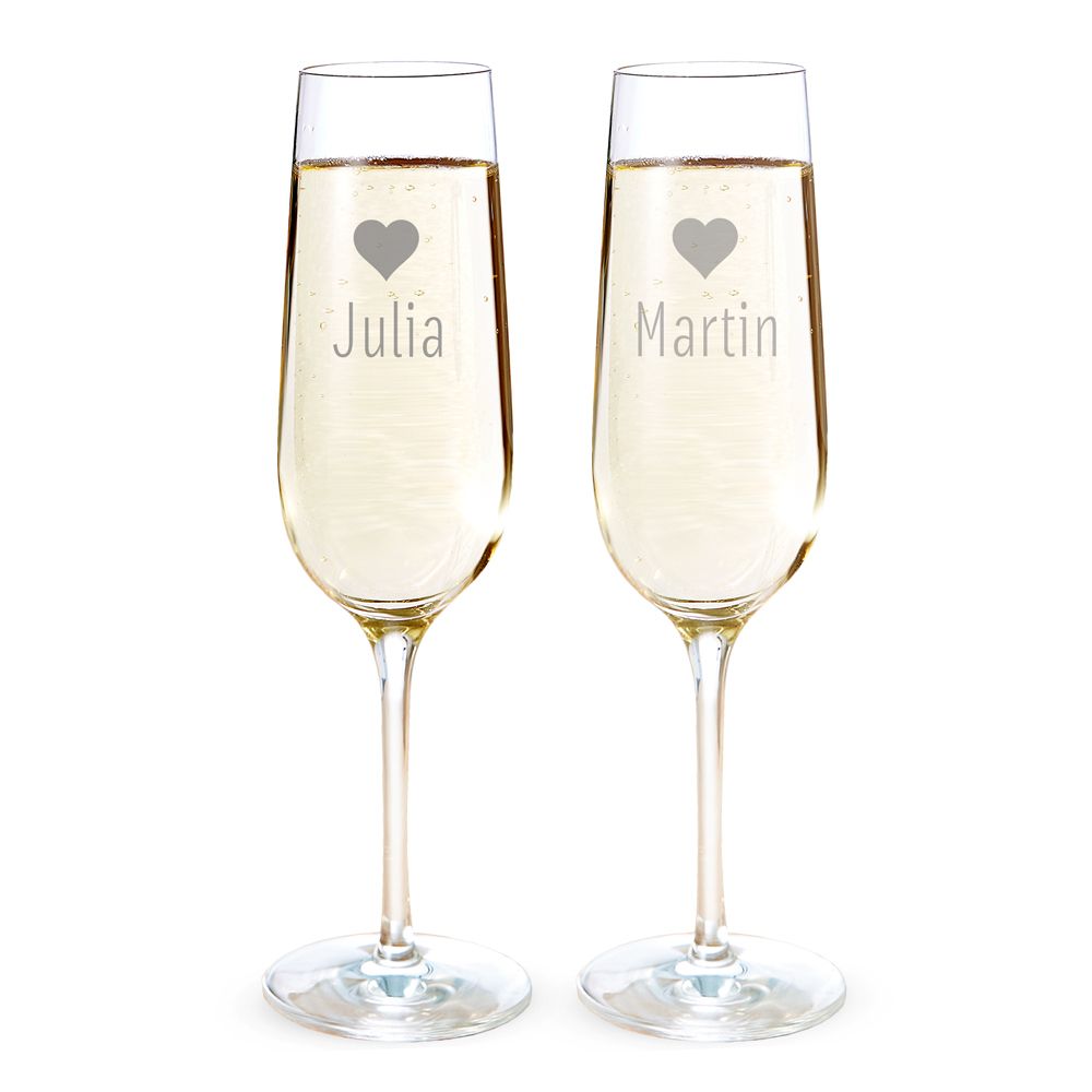 Sektglas mit Gravur Herz - Personalisiert - 2er Set
