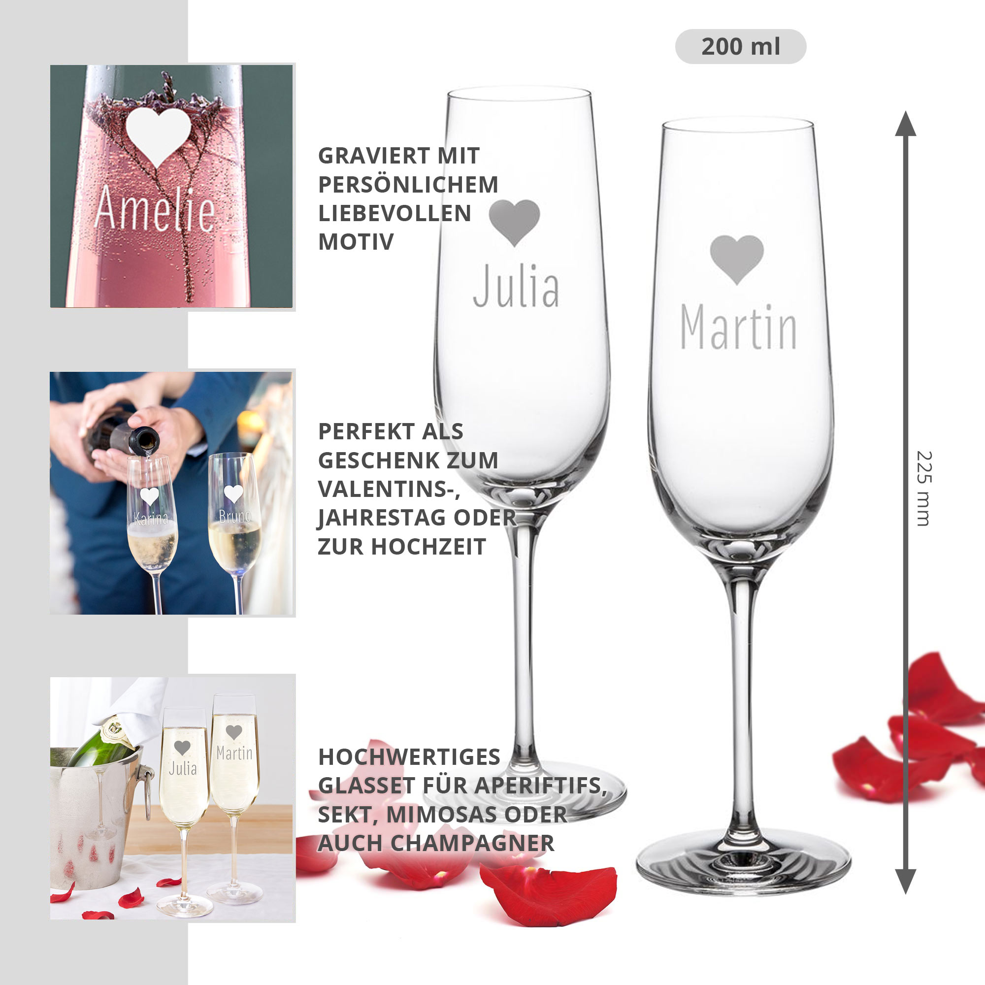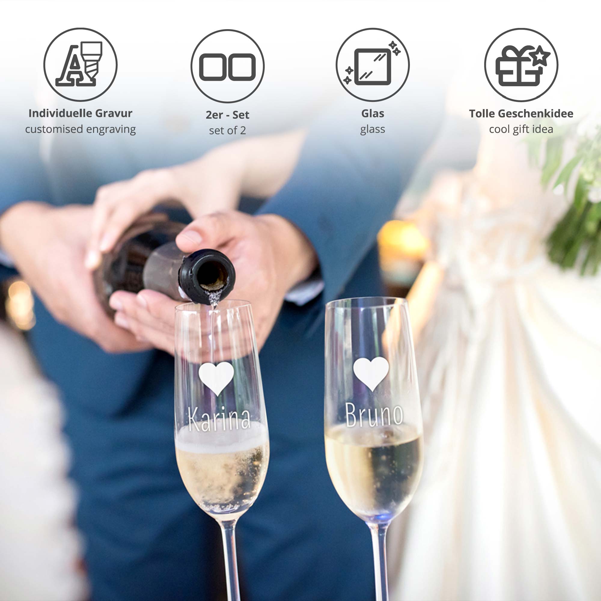 - edle Sektgläser, sorgfältig graviert in modernem Design