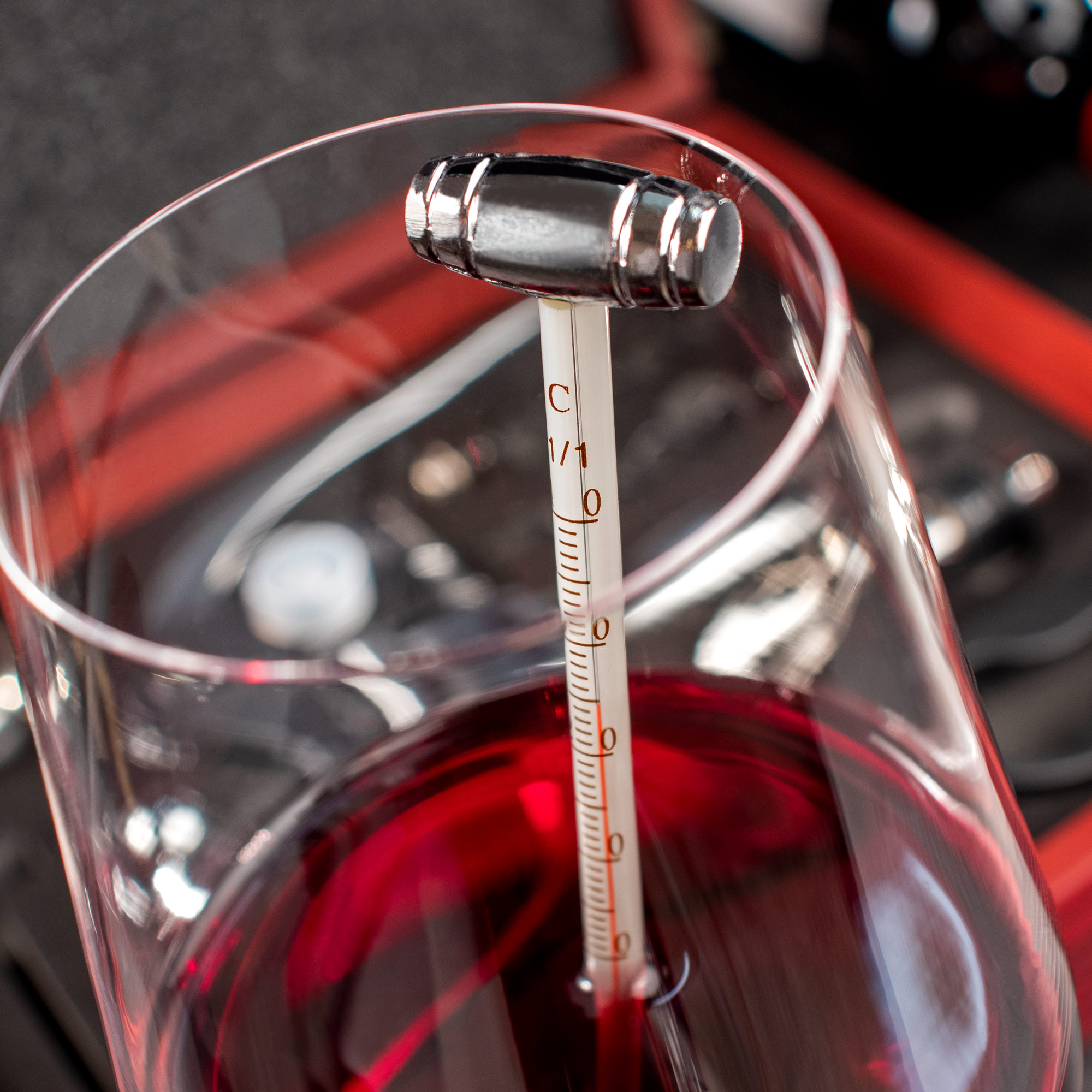 Was kann ich meinen Eltern zur Silberhochzeit schenken? Auf diese Frage ist das Wein Sommelier Set mit Gravur zur Silberhochzeit die passende Antwort für Genießer edler Weine. Das Wein Zubehör in der dekorativen Geschenkbox aus dunkelrotem Holz besteht aus wichtigen Accessoires für die Weinverkostung wie dem praktischen Hebelkorkenzieher mit weiteren Ersatzschrauben, Weinbelüfter, Eingießhilfe, Folienschneider, Tropfring, Flaschenverschluss und einem Thermometer. Damit gelingt jede Weinverkostung und die Beschenkten werden zu echten Weinsommeliers.