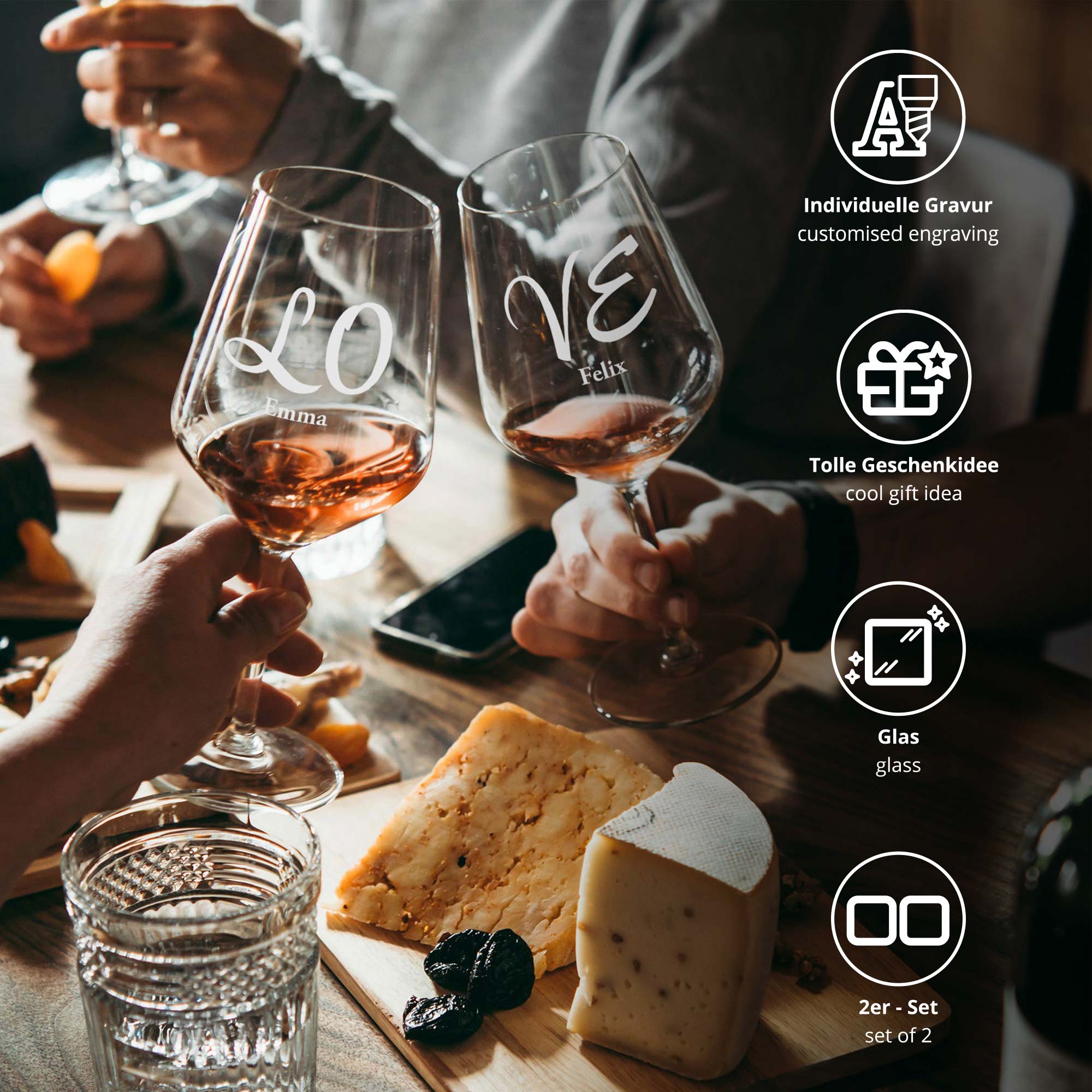 - 2er Set - das perfekte romantische Geschenk für Weinliebhaber