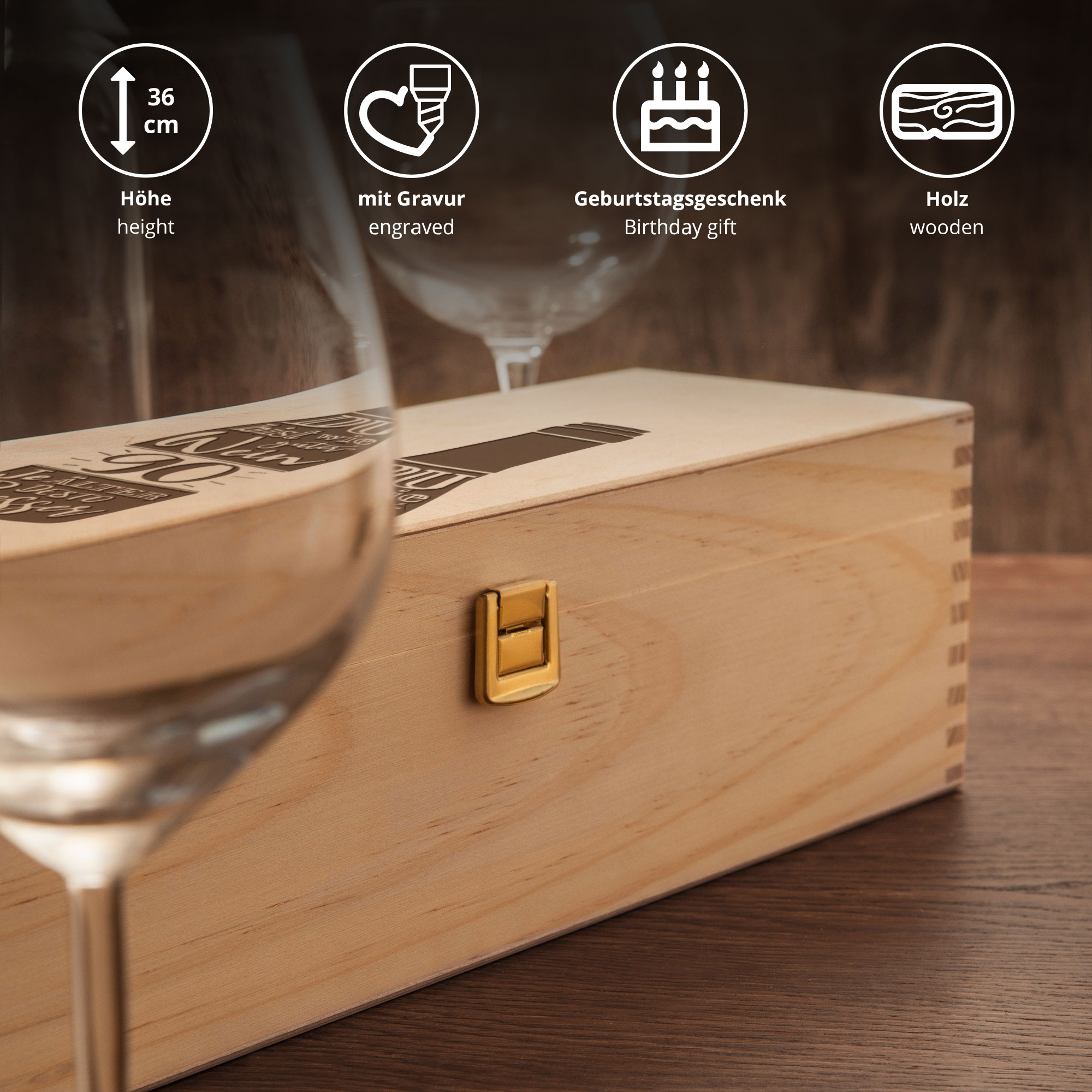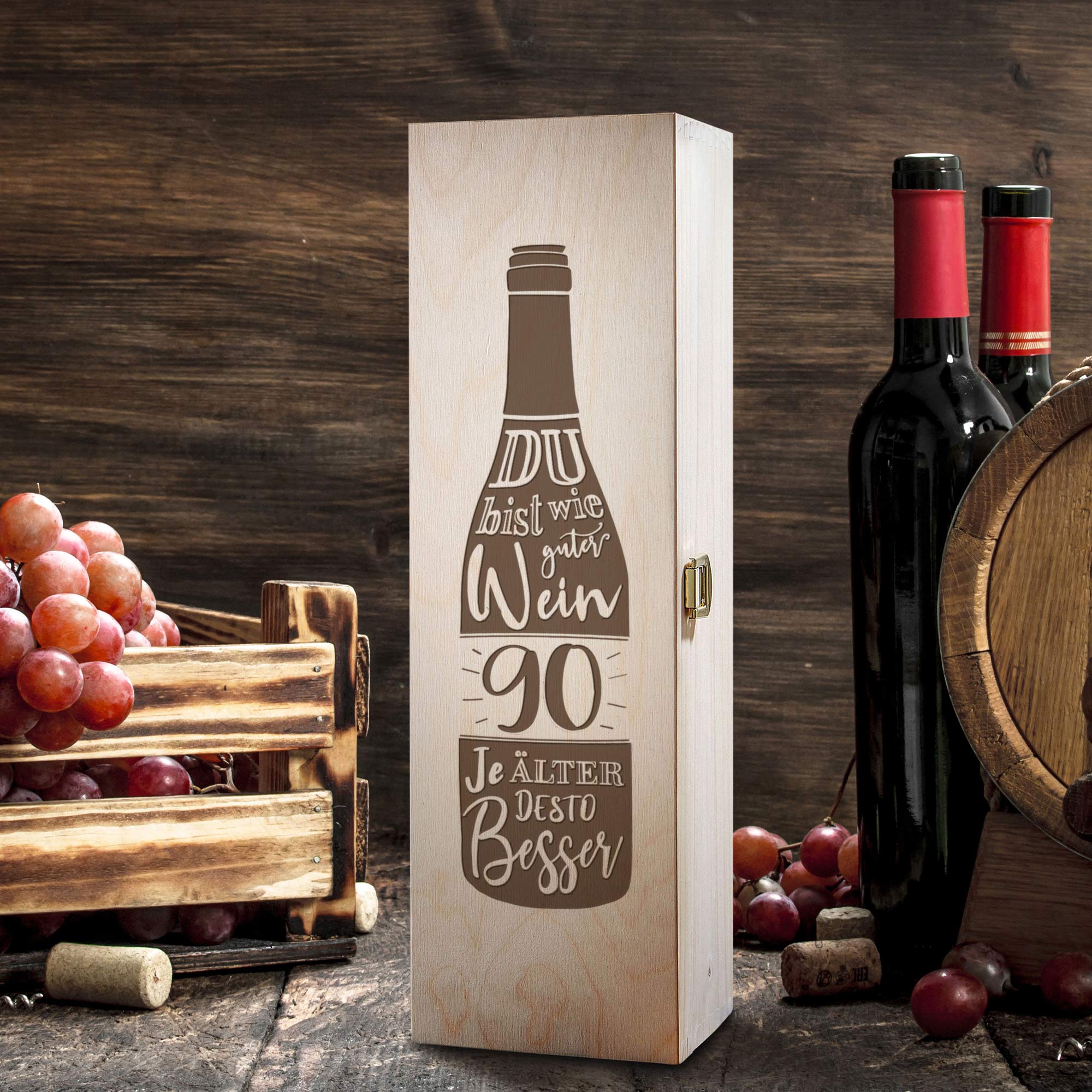 - Edle Flaschenkiste mit Gravur zum 90. Geburtstag