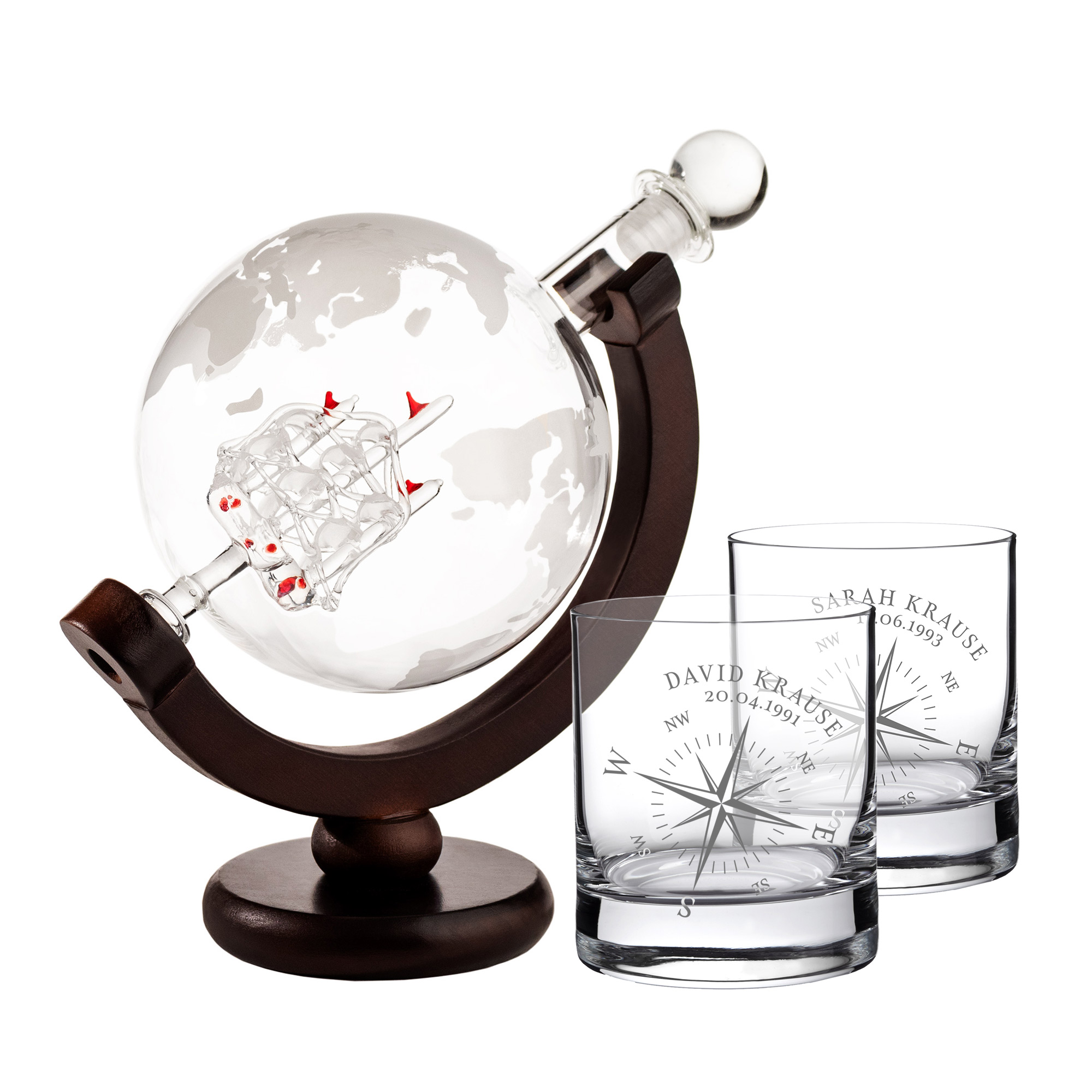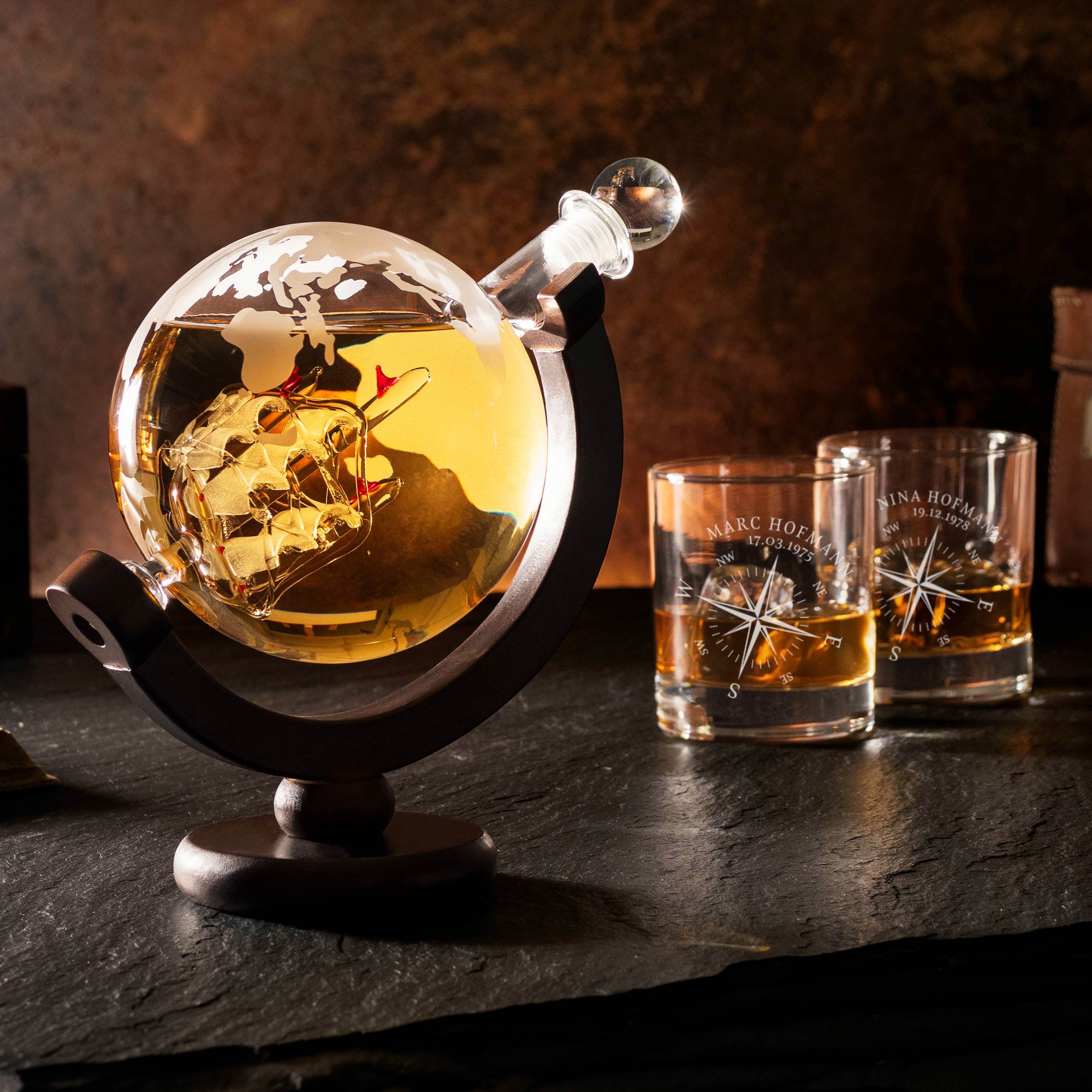 Whisky Set - Karaffe Globus und 2 Whiskygläser - Kompass