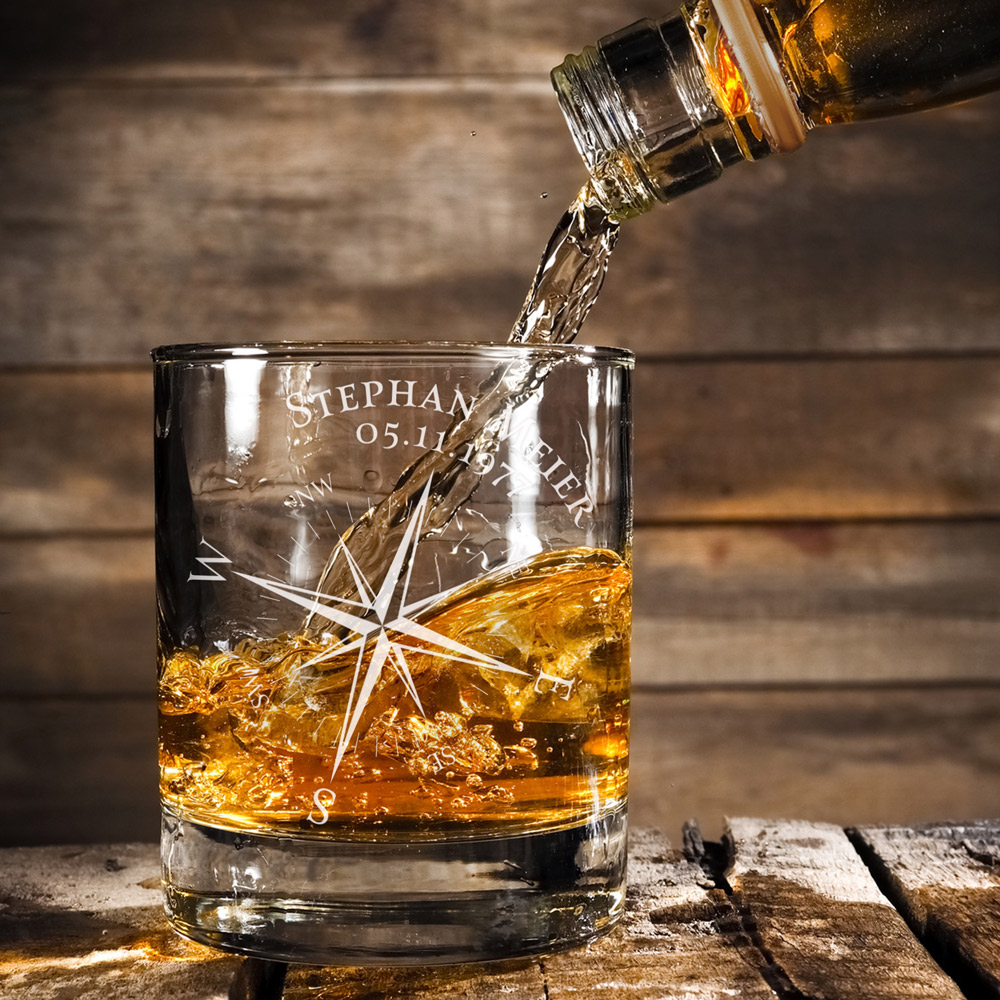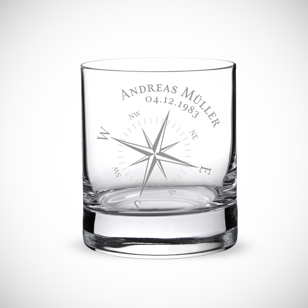 Whiskyglas mit Gravur Kompass - Personalisiert