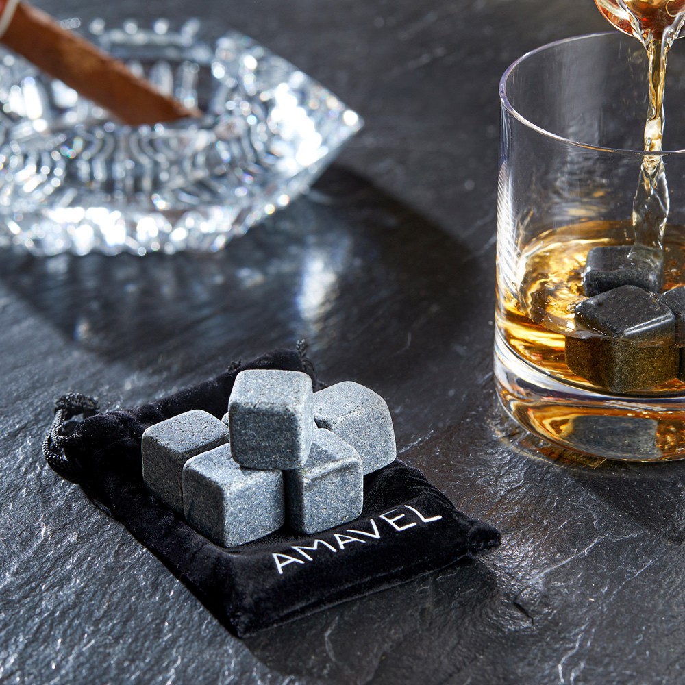 - Enthält: Neun Whisky Steine aus Granit, ein Aufbewahrungsäckchen und eine gravierte Holzbox
